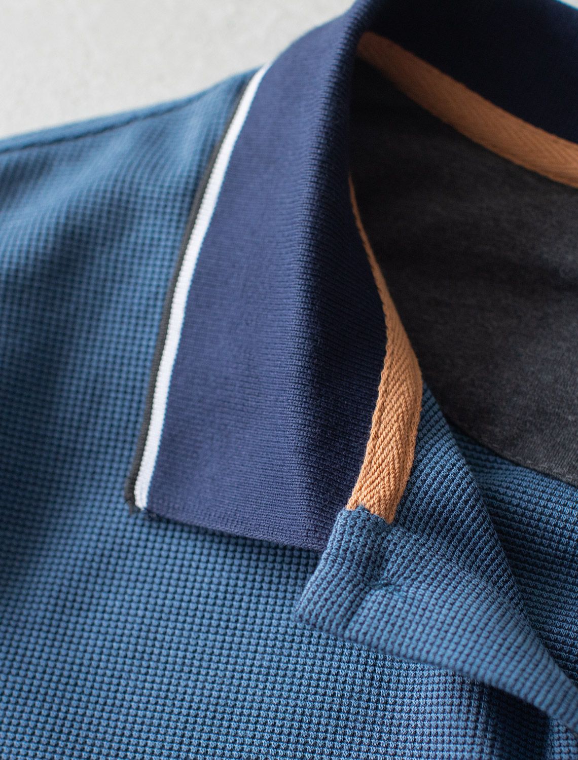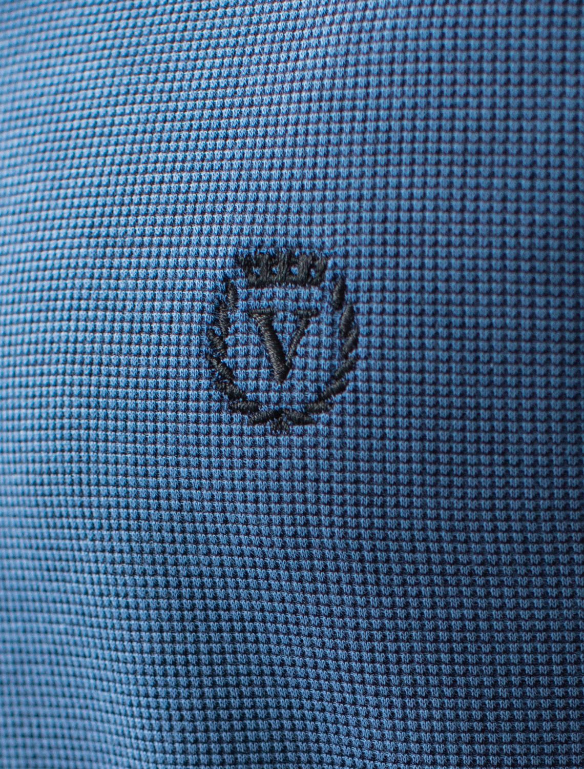 Лонгслив из фактурного трикотажа с плетеным воротником поло с застежкой на пуговицы U49.059 св.синий