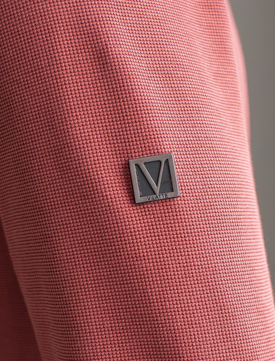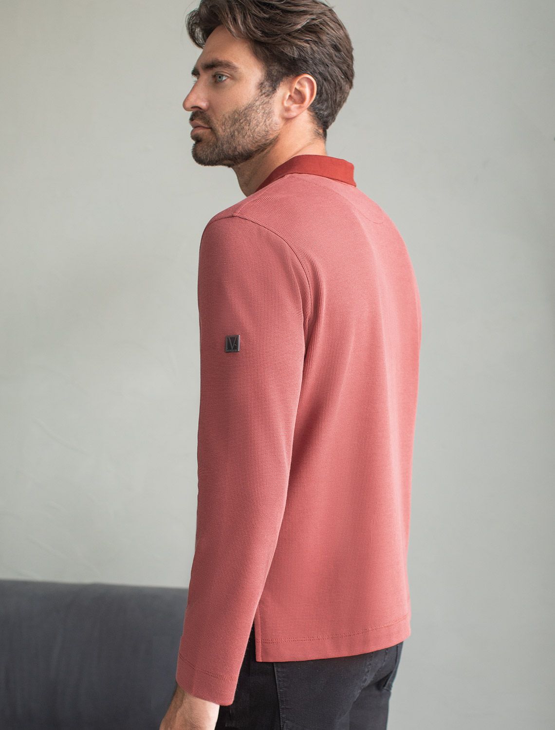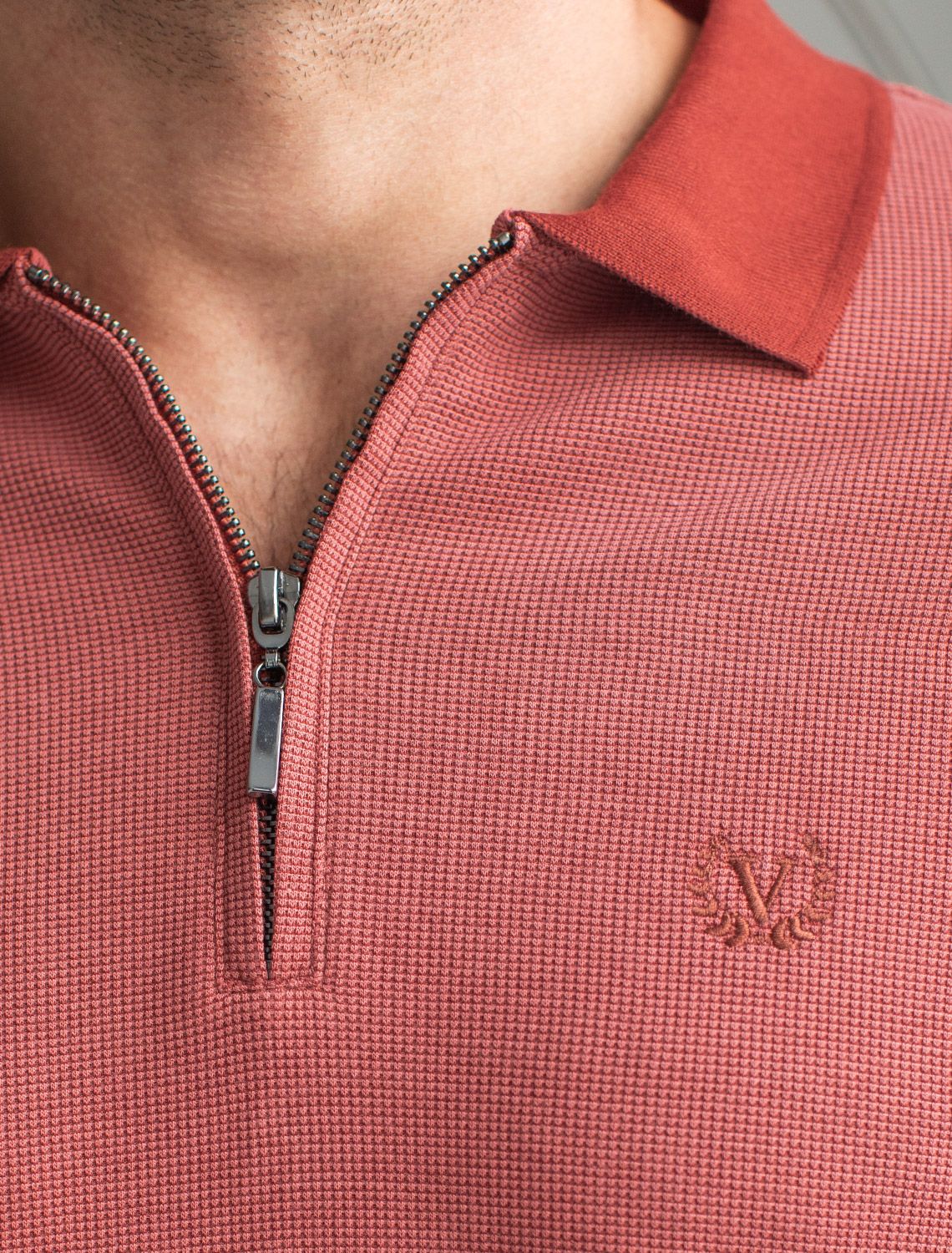 Лонгслив из мягкого фактурного трикотажа с плетеным воротником поло на молнии U49.060 кирпичный