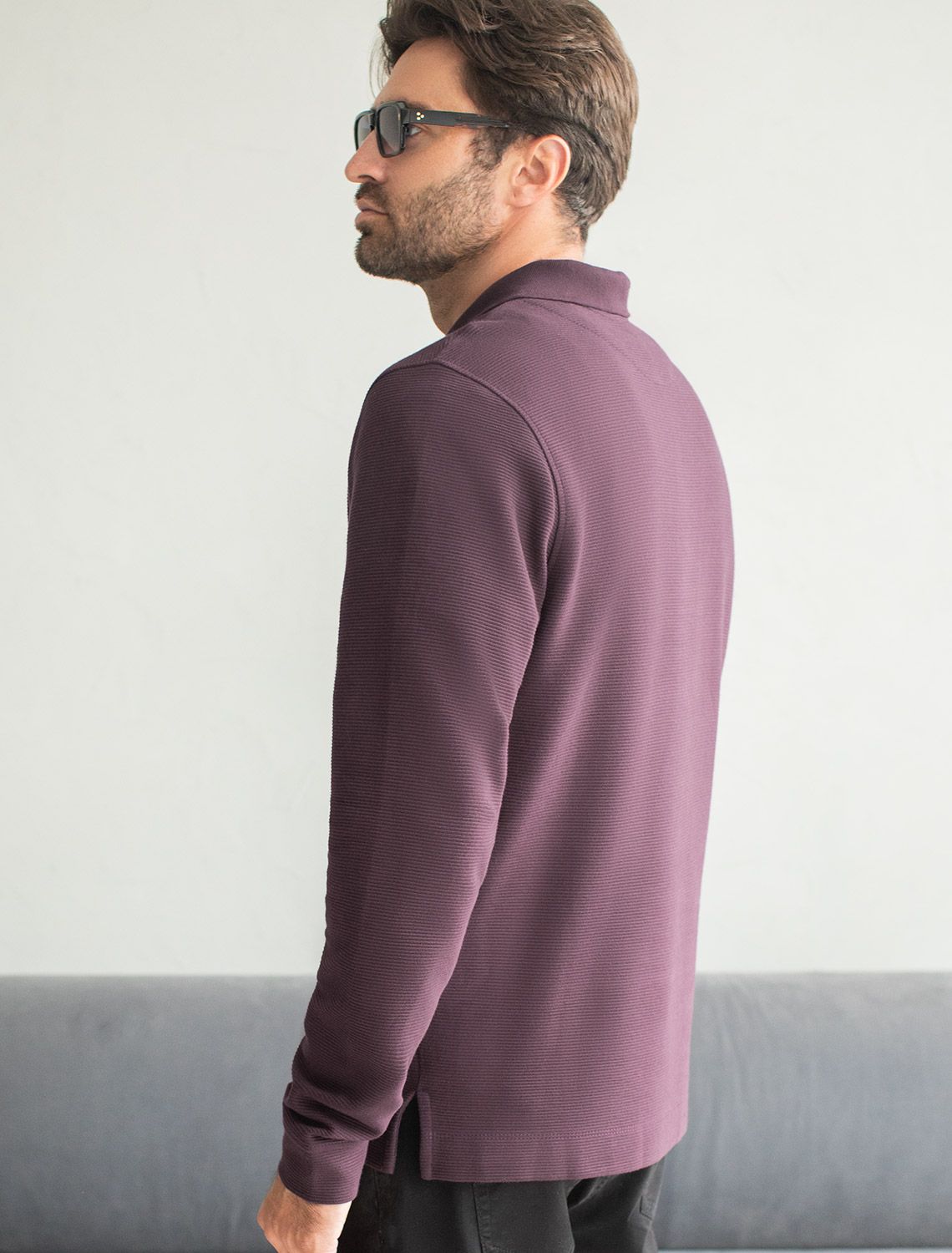 Стильный лонгслив цвета бургунди с плетеным воротником поло с застежкой на металлические пуговицы выполнен из премиального хлопка в сочетании с эластаном . Невероятно мягкая ткань из натуральных волокон - она едва ощутима на коже и словно обнимает тело. Материал при касании кажется бархатистым, при движении он словно повторяет все мельчайшие линии фигуры. По свойствам материал сочетает в себе практичность и нежность: отлично пропускает воздух, сохраняя ощущение свежести в течение всего дня, при этом в нем тепло в прохладную погоду.Идеально подходит для чувствительной кожи, не вызывает раздражения и дискомфорта. Удобный отложной воротник с контрастной отделкой делает образ современным и стильным, а длинные рукава с манжетами защищают руки при ветреной погоде.