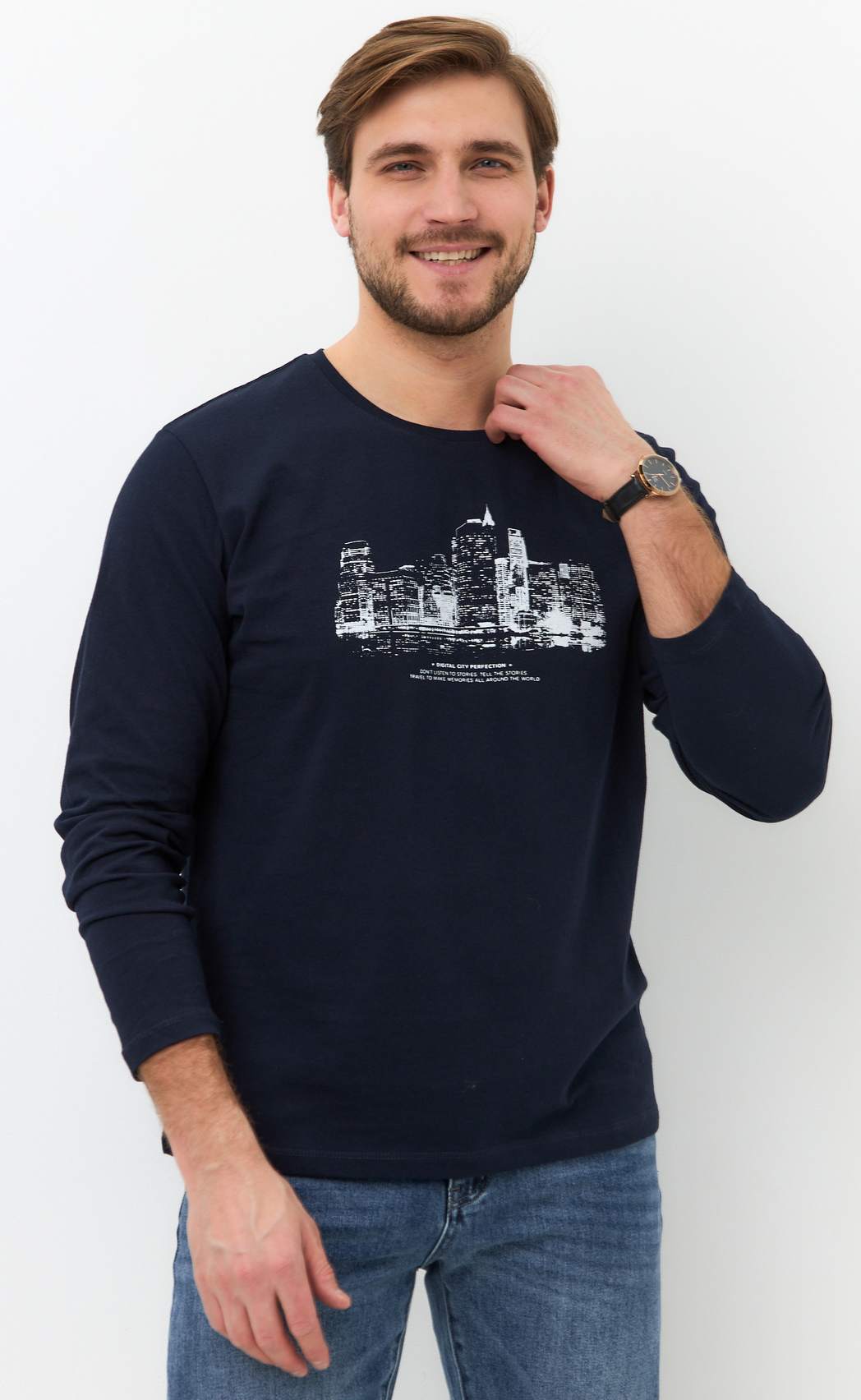 Лонгслив мужской с принтом F021-1001-430 темно-синий