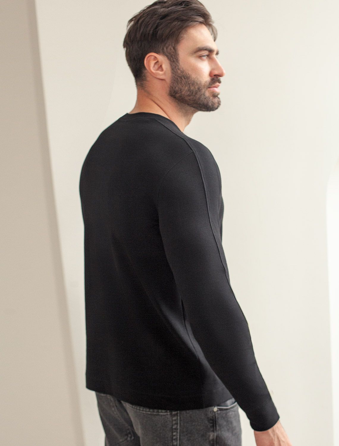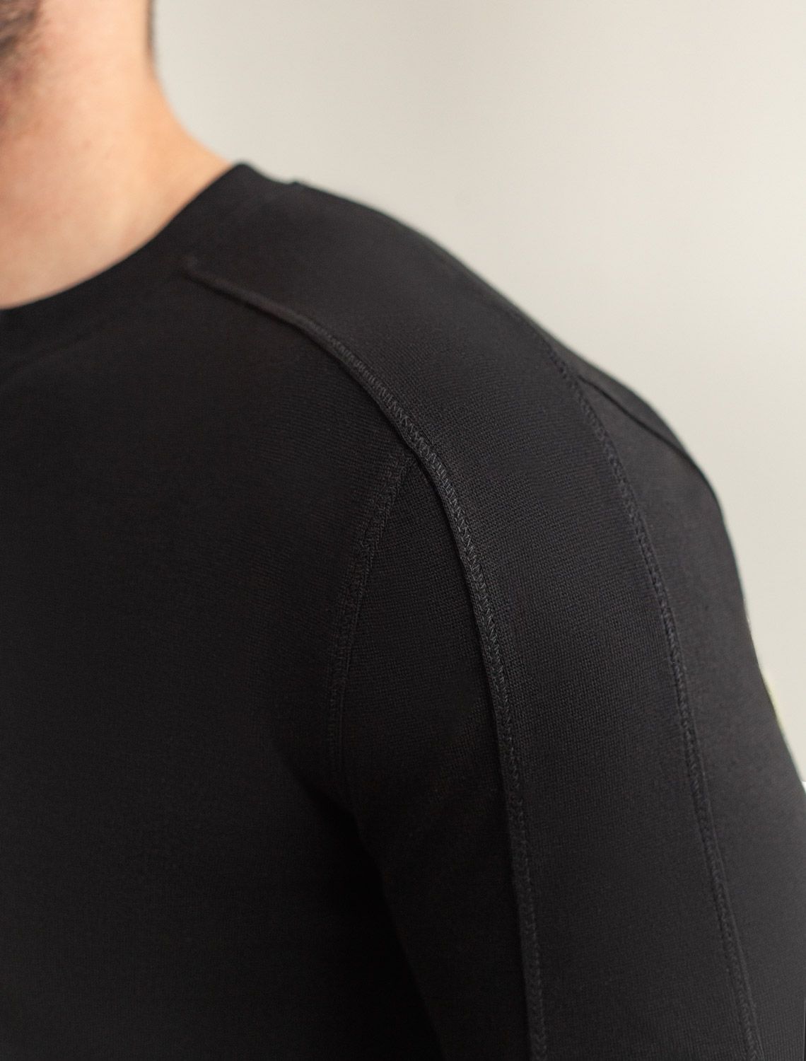 Лонгслив с воротником на пуговицах и декоративными швами из премиального хлопка с эластаном U49.055 черный