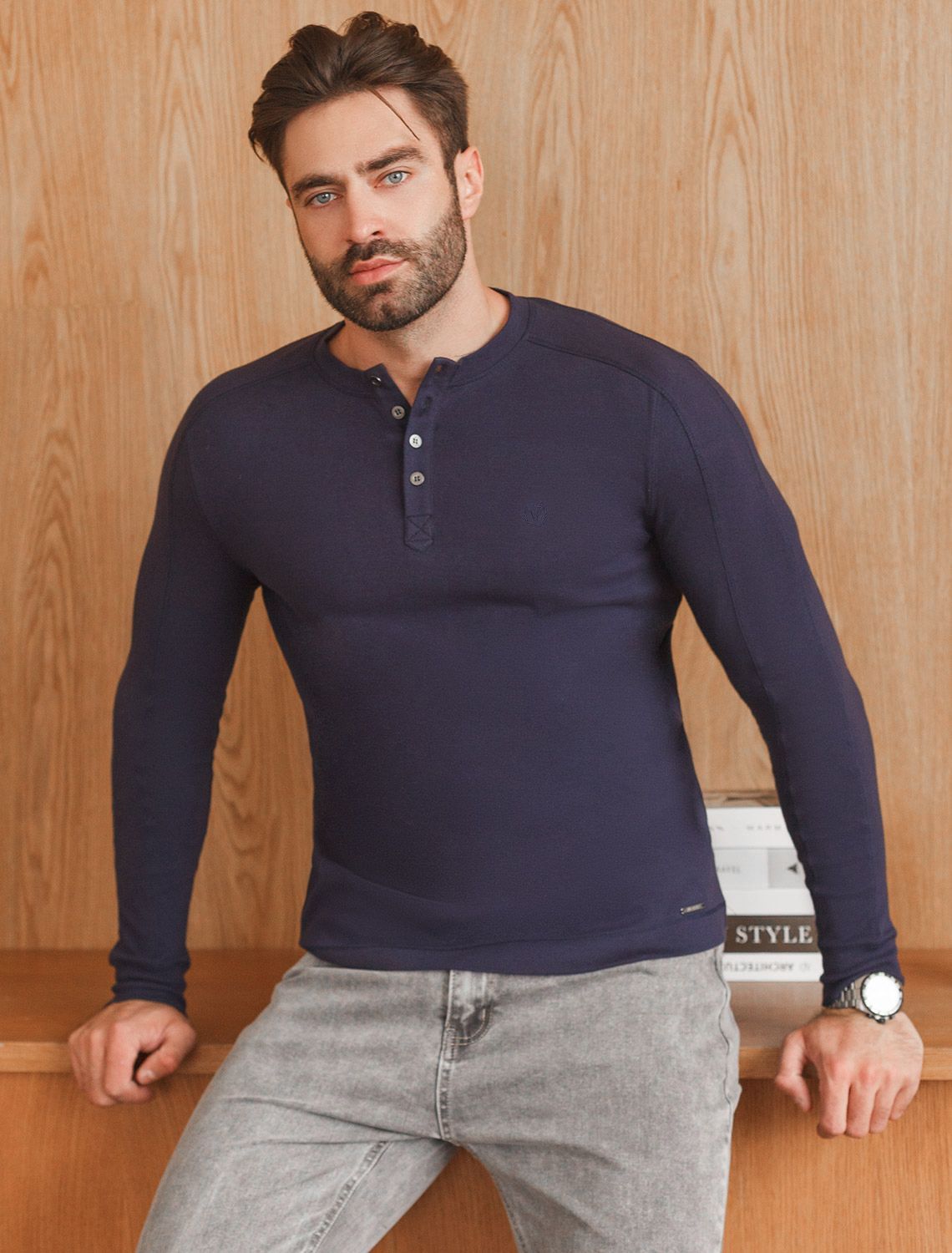 Лонгслив синего цвета выполнен из премиального хлопка с эластаном и идеально подходит для повседневной носки. Круглый ворот с застежкой на металлические пуговицы с логотипом бренда добавляет образу стильный акцент, делая этот лонгслив универсальным выбором как для парней, так и для мужчин любого возраста. Декоративные швы на рукавах и минималистичная вышивка в виде эмблемы VILATTE придают лонгу современный вид и подчеркивают его уникальность.