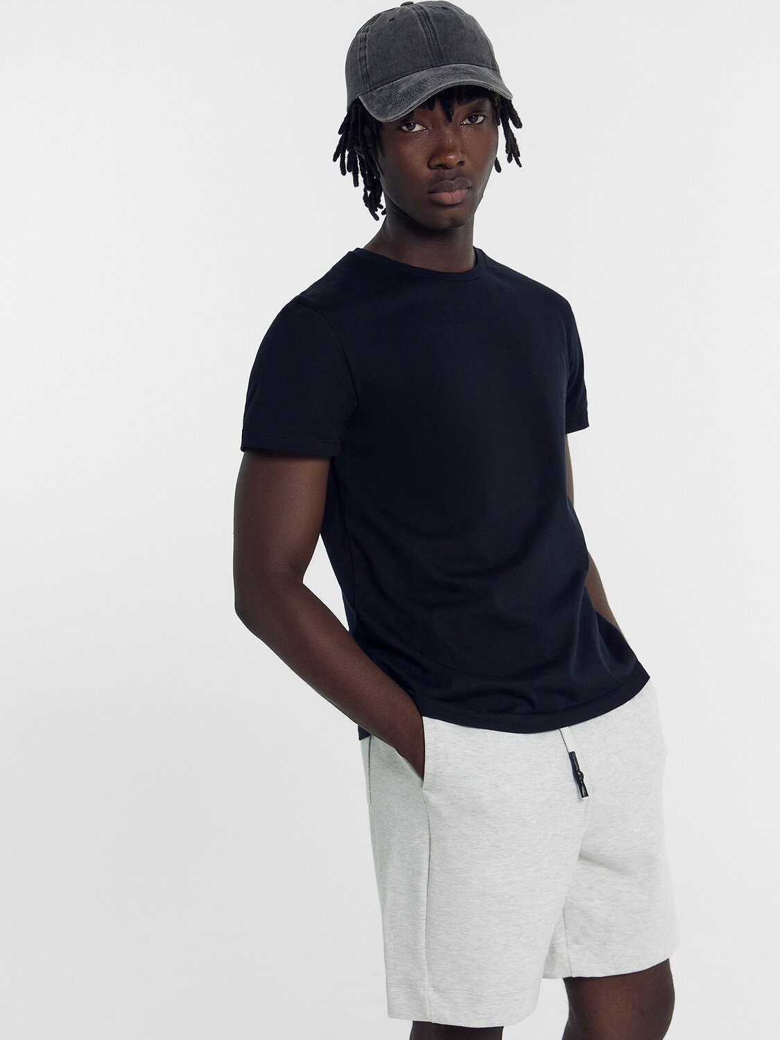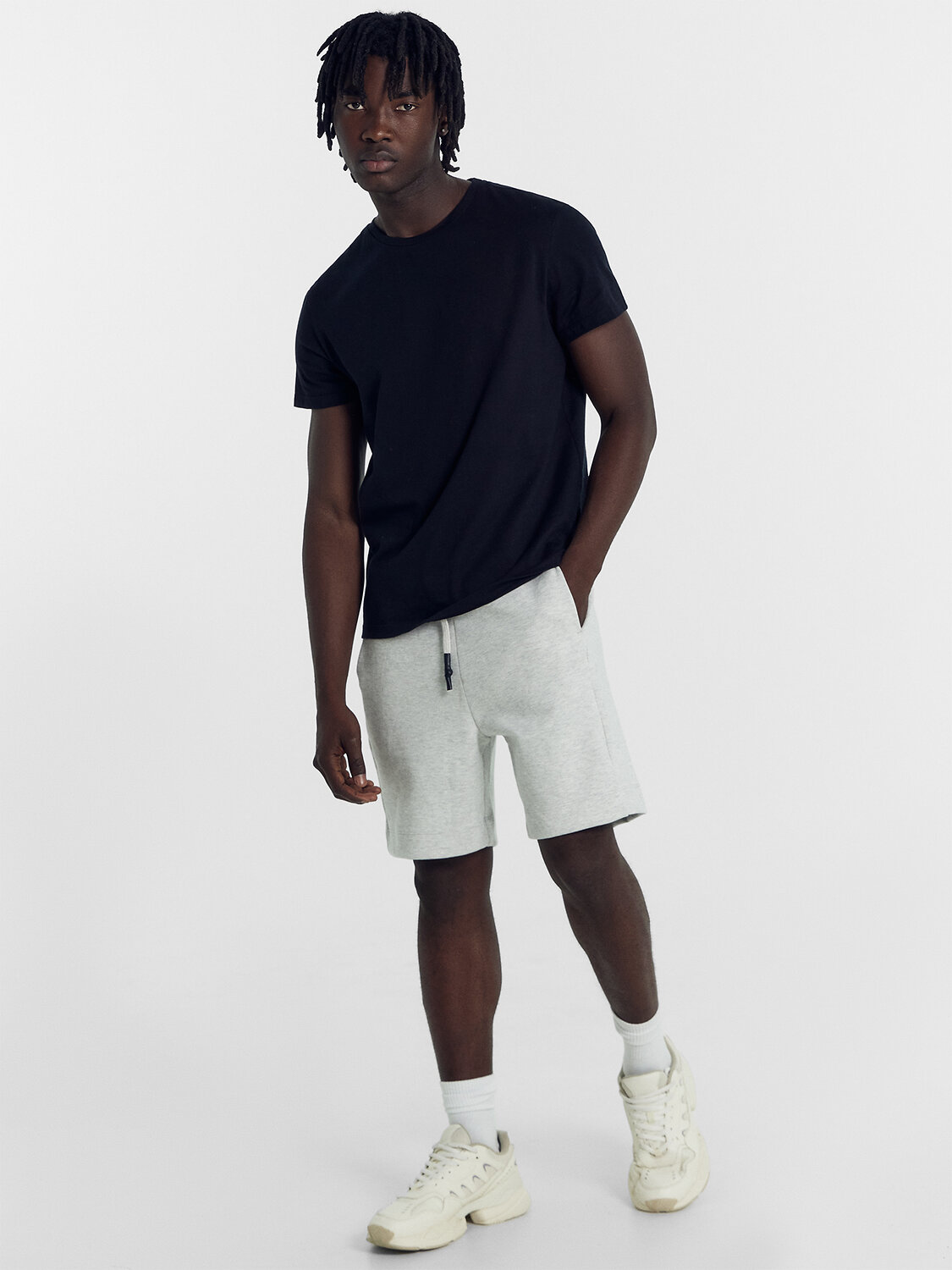 Шорты прямые свободные, длиной до колен.