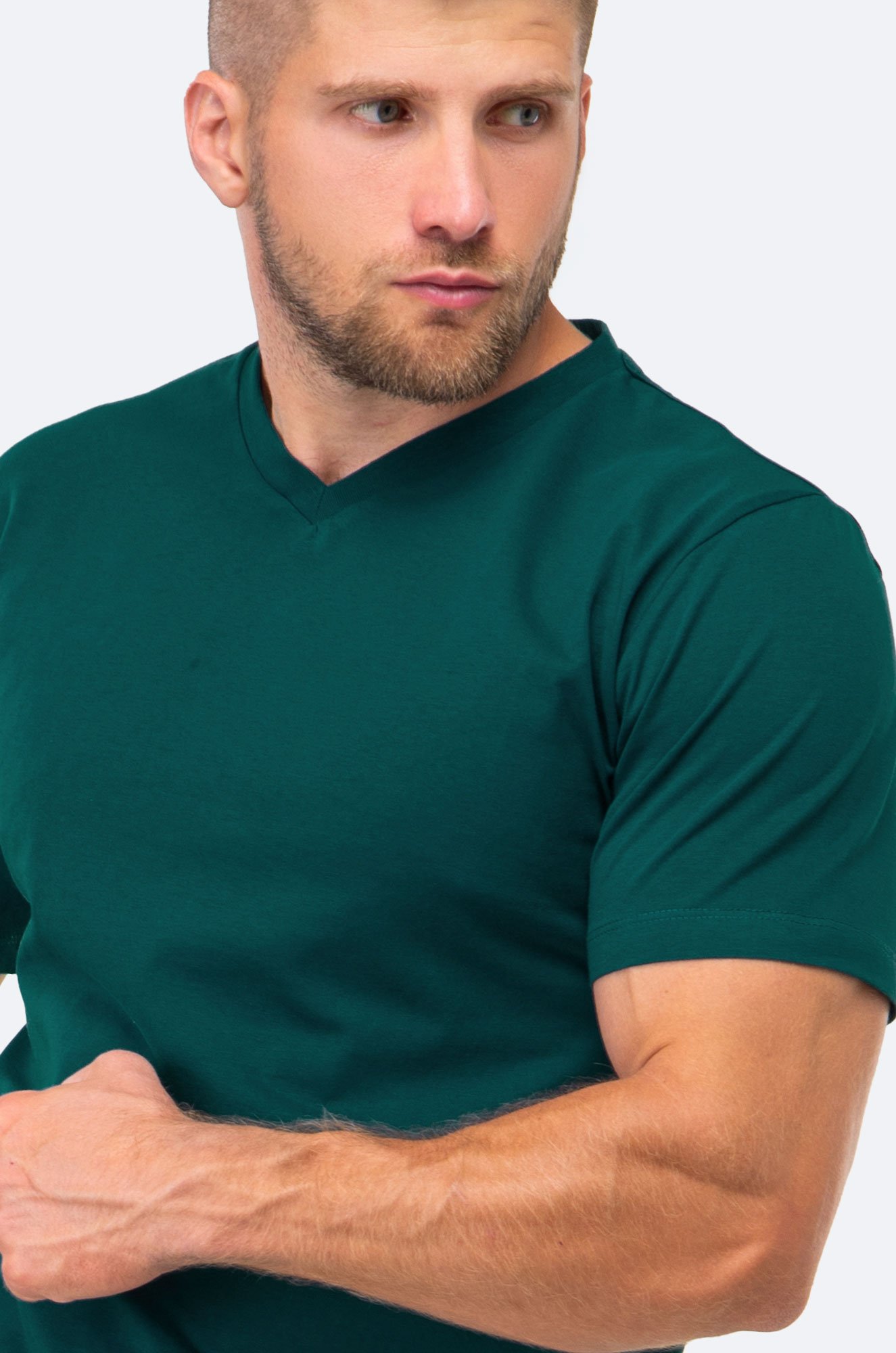 Однотонная мужская футболка с V-вырезом выполнена из нежного 100% хлопка – трикотажной ткани кулирная гладь. Дышащая мягкая ткань делает футболку идеальной для летней погоды.