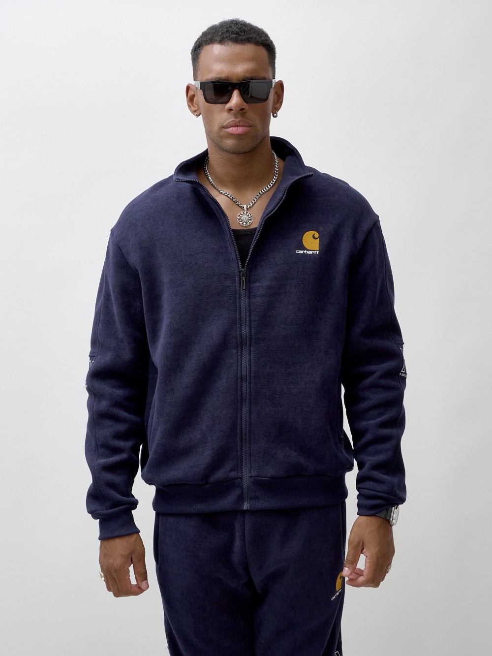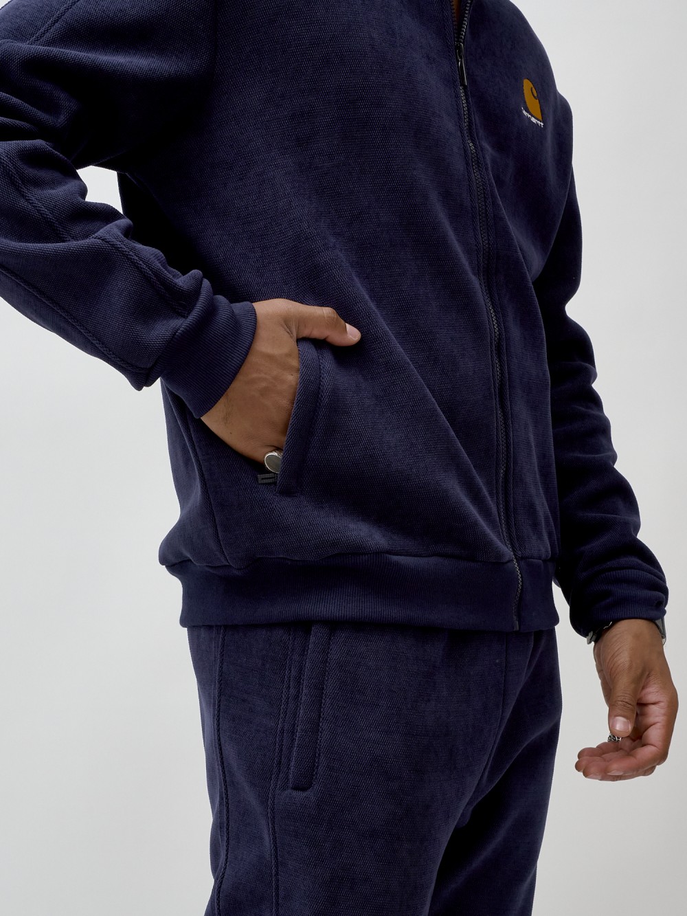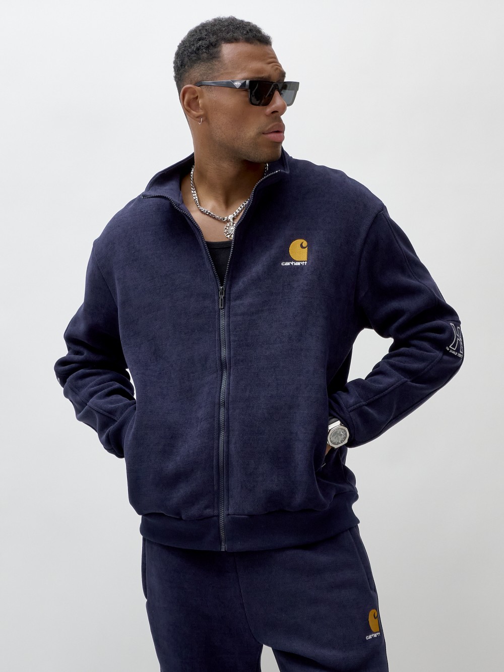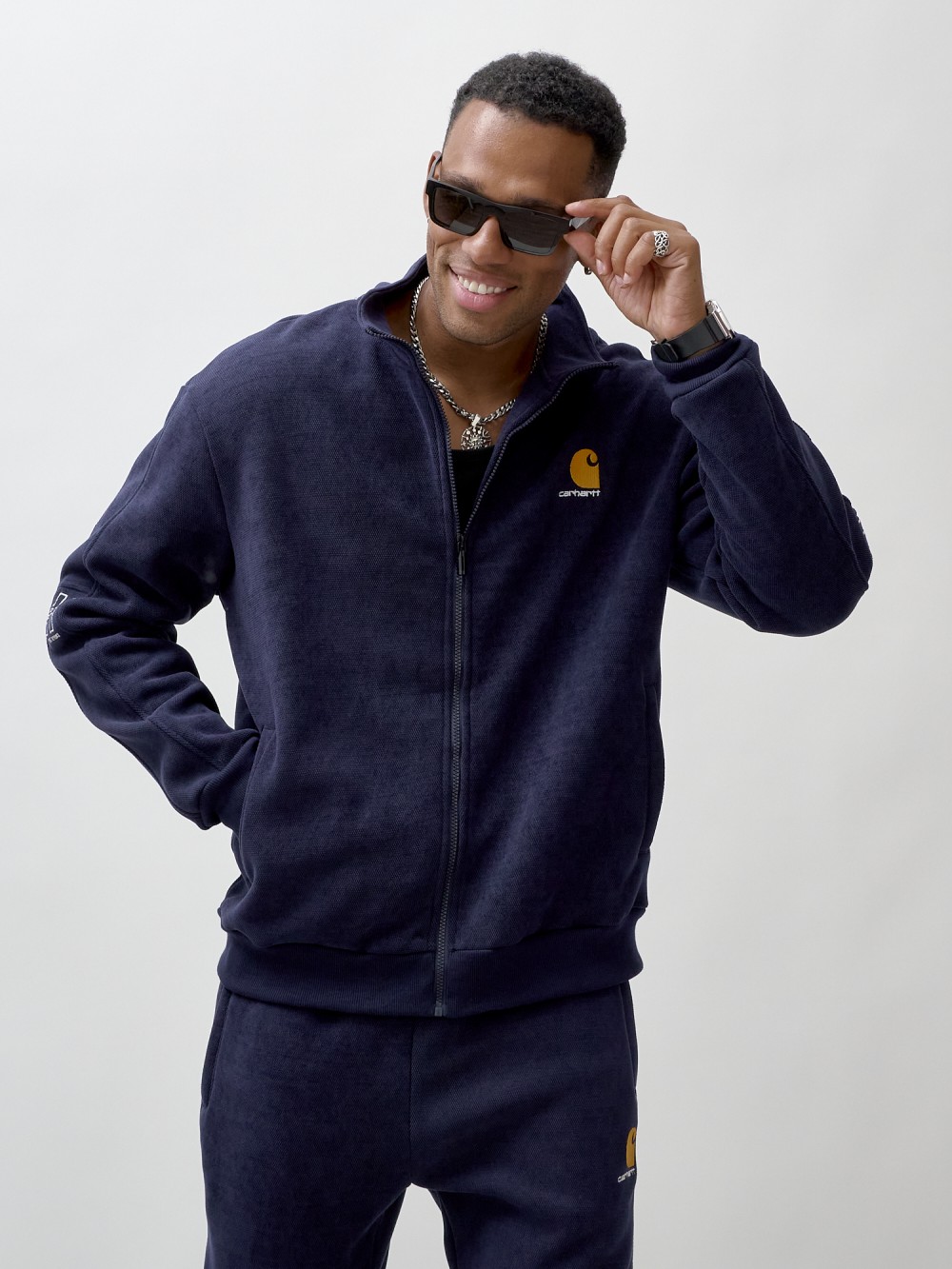 Олимпийка мужской демисезонный на флисе УЦЕНКА темно-синего цвета 0877TS
