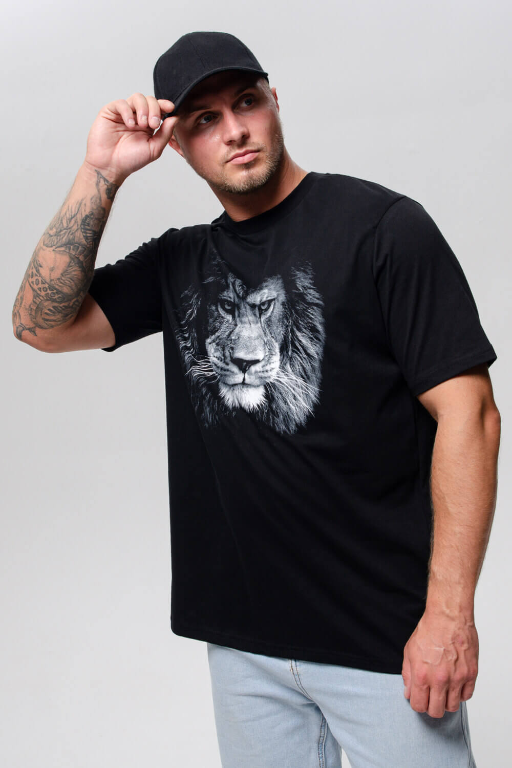 Мужская футболка 8500/1 / черный+лев
