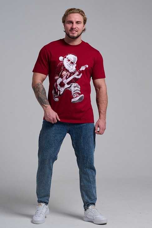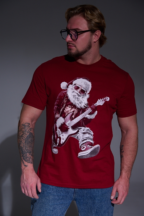 Мужская футболка 8581 / бордо+Д мороз с гитарой