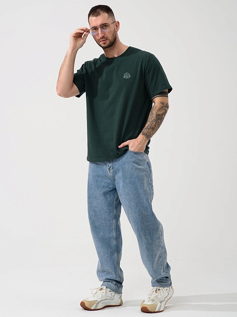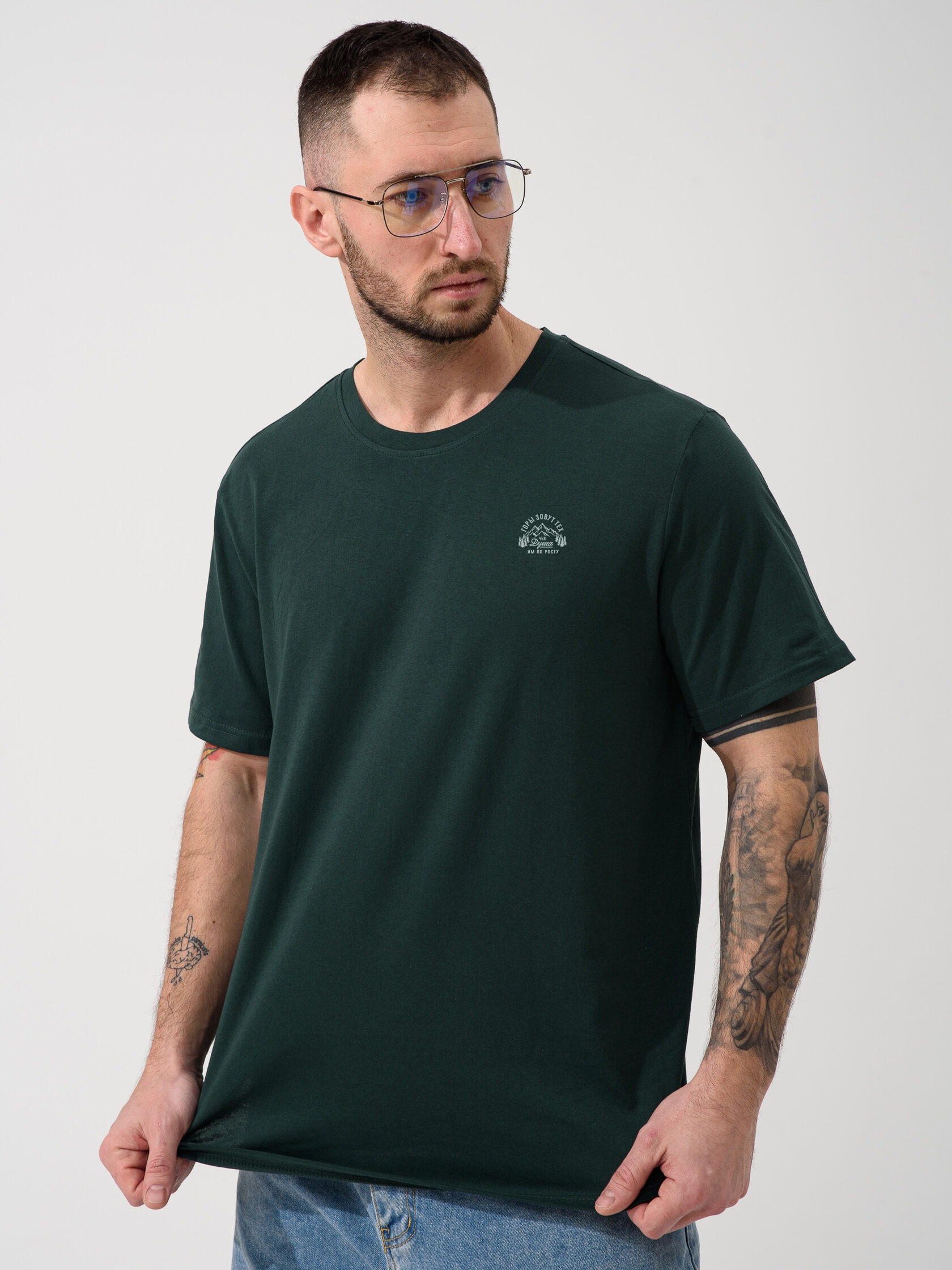 Мужская футболка "Горы зовут" 2438-К / Зеленый из кулирного хлопкового полотна. Мужская футболка с короткими рукавами, с принтом на груди.