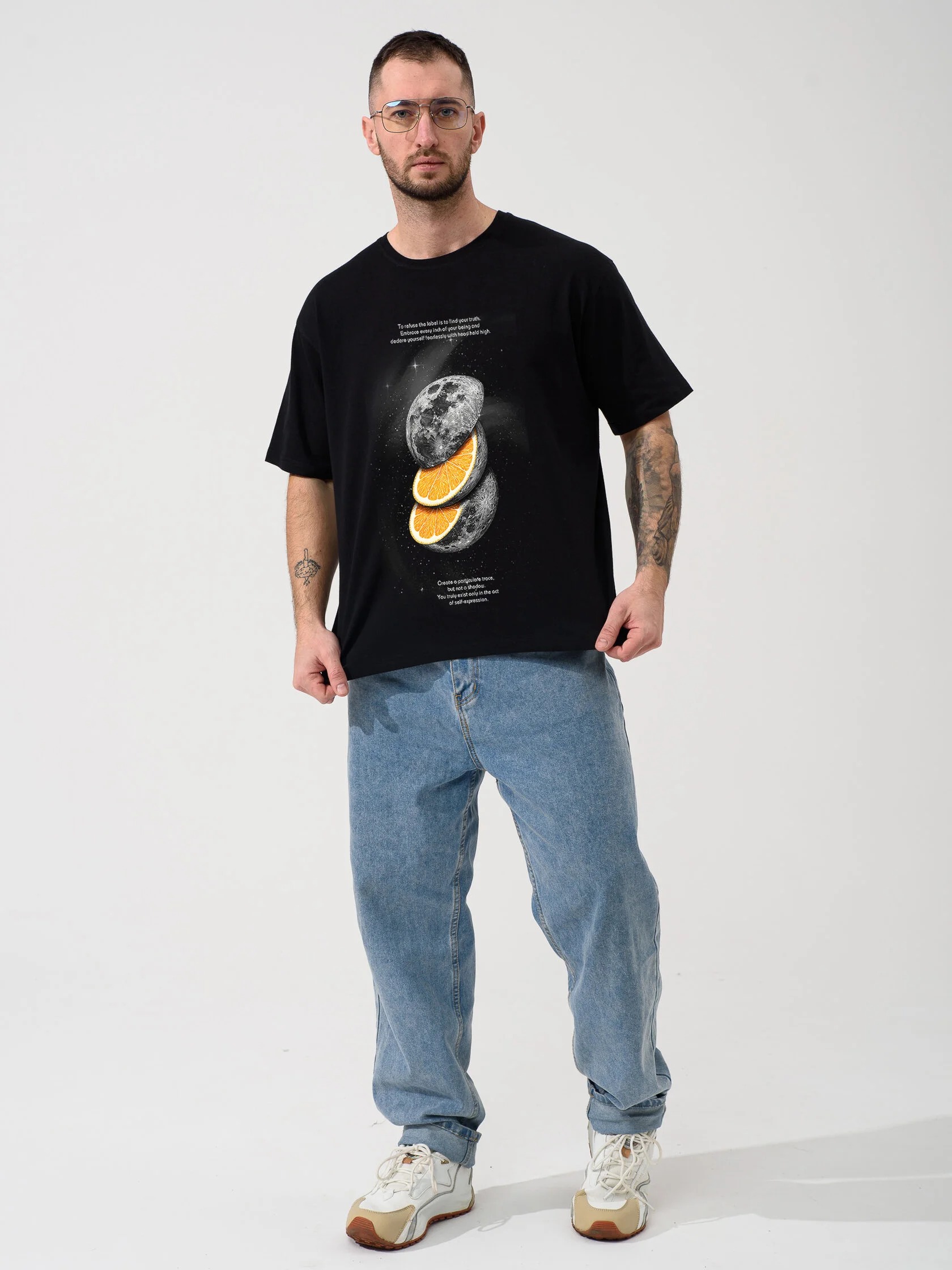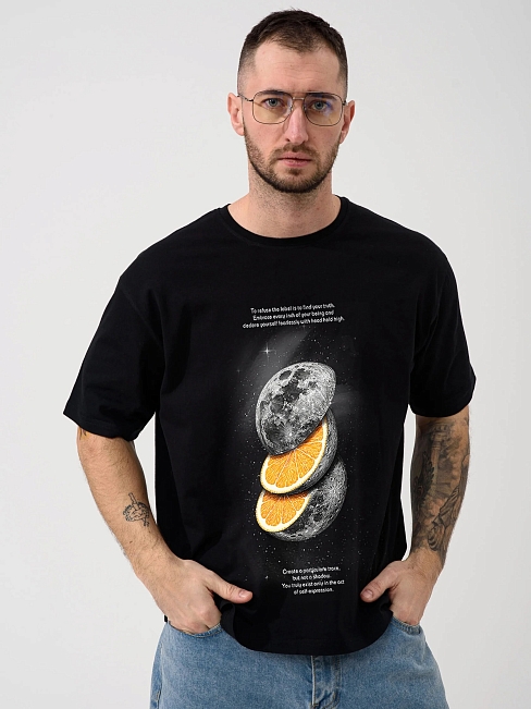 Мужская футболка "Луна" 2436-К / Черный из кулирного хлопкового полотна. Мужская футболка с короткими рукавами, с принтом на груди.