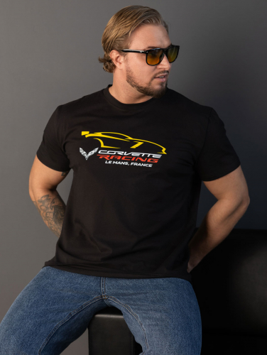 Мужская футболка из кулики с лайкрой, базового кроя, с О-образной горловиной, коротким рукавом и принтом спереди.