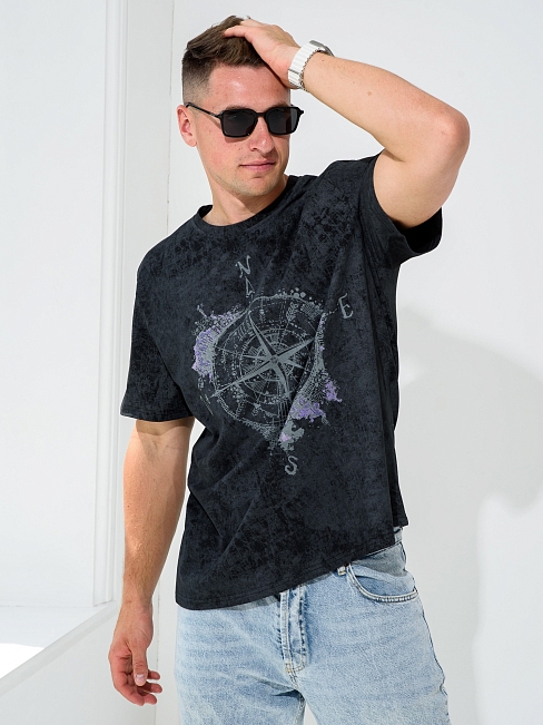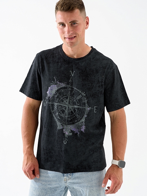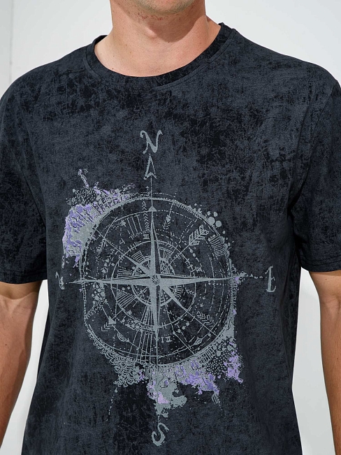 Мужская футболка "Роза ветров" 2279-К / Черный из кулирного хлопкового полотна. Мужская футболка с короткими рукавами, с принтом на груди.