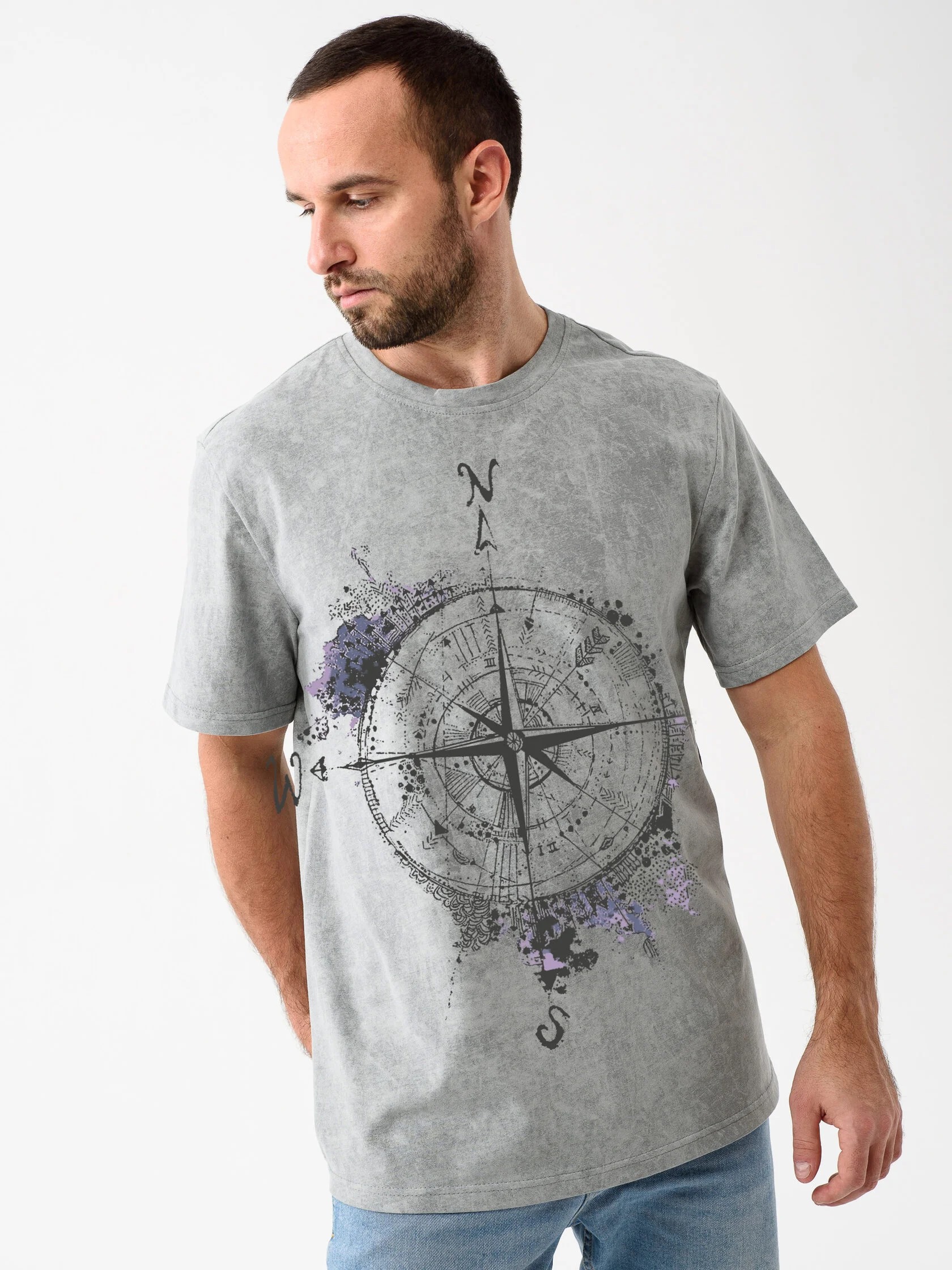 Мужская футболка "Роза ветров" 2279-К / Серый из кулирного хлопкового полотна. Мужская футболка с короткими рукавами, с принтом на груди.