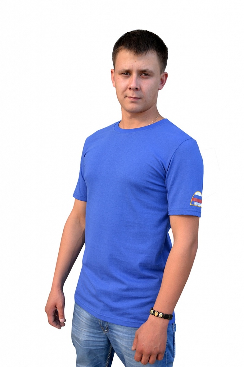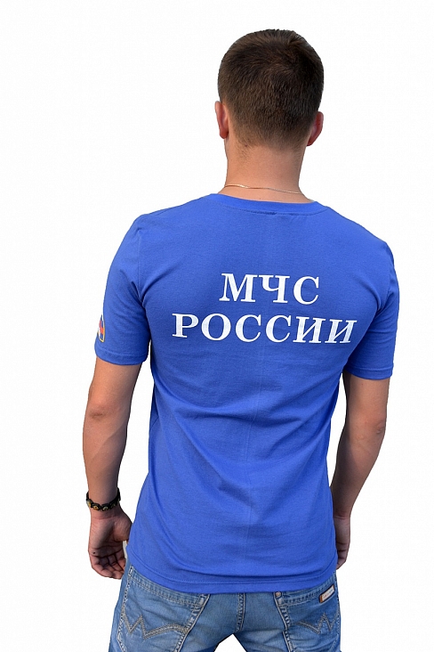 Футболка с логотипом "МЧС" / 7.6.6.4 васильковая с логотипом "МЧС России" на спине и знаком на рукаве. Отделка - рибана.