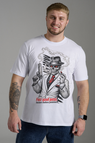 Мужская футболка "Шах и мат" 2439-К из кулирного хлопкового полотна. Мужская футболка с короткими рукавами, с принтом на груди.
