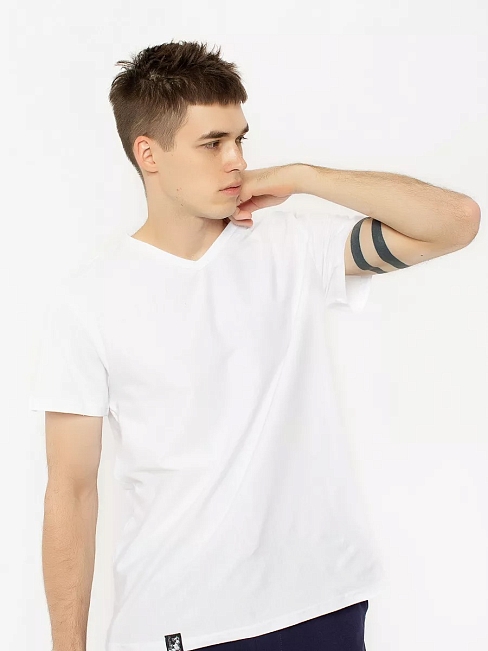 Футболка "Симпл Белый" арт. км159б выполнена из кулирного полотна 100% хлопок. Изделие выполнено с V-образным вырезом горловины, что отражает современные модные тенденции. Данная модель прекрасно подходит для повседневной носки и никак не стесняет движение, а хлопковая ткань позволяет коже дышать и выводить влагу.