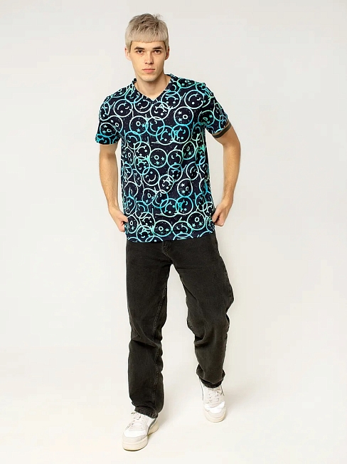 Мужская футболка "Смайлы" арт.мк222тс с коротким рукавом выполнена из кулирного полотна 100% хлопок мягкого и приятного на ощупь. Изделие выполнено с V-образным вырезом горловины, что отражает современные модные тенденции. Данная модель прекрасно подходит для повседневной носки и никак не стесняет движение, а хлопковая ткань позволяет коже дышать и выводить влагу.