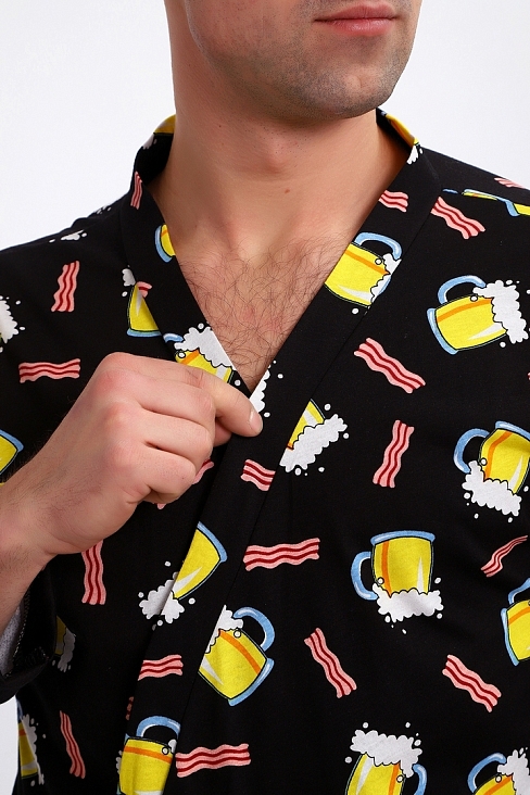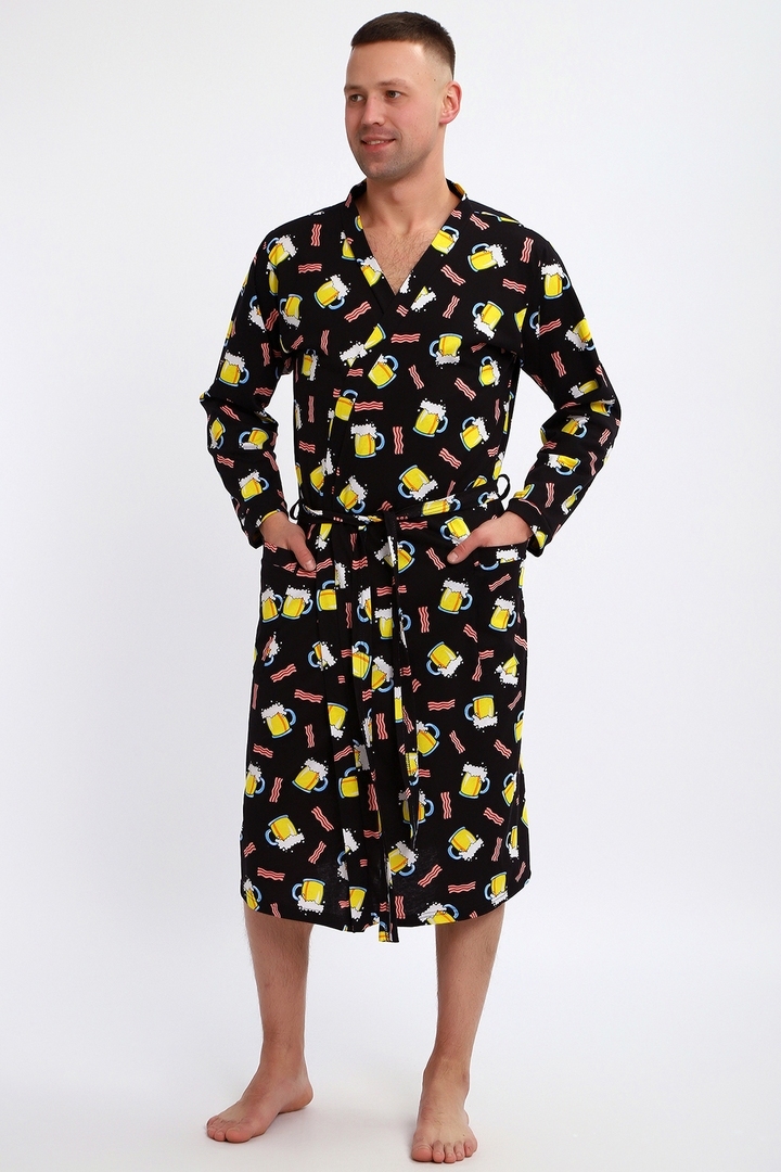 Мужской халат из кулирки — это практичная и комфортная домашняя одежда, изготовленная из 100% хлопка. Кулирка — мягкий трикотаж, который хорошо «дышит», не вызывает аллергии и подходит для ежедневного использования. Такие халаты обычно имеют свободный крой, длинные рукава и застёгиваются на запах с поясом.