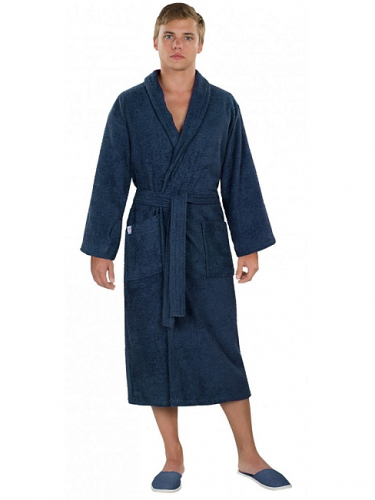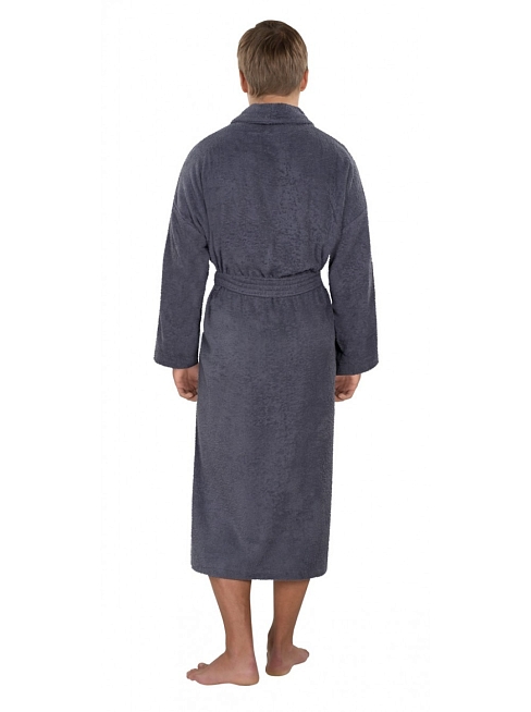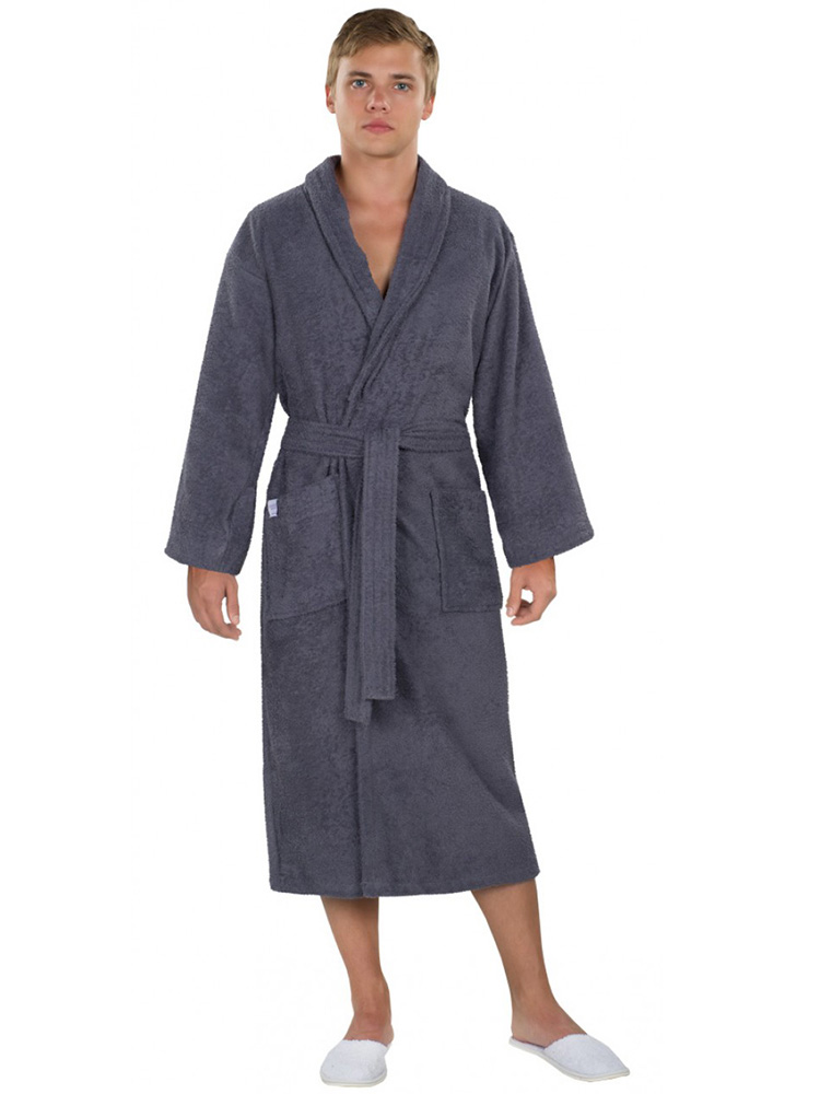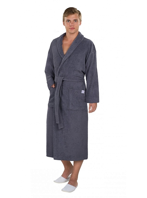 Модель халата Премьер шаль / Графит: запашной с накладными карманами и поясом, воротник шалька, длина рукава 59 см (+/-1), длина по спине 120 см (+/-1)