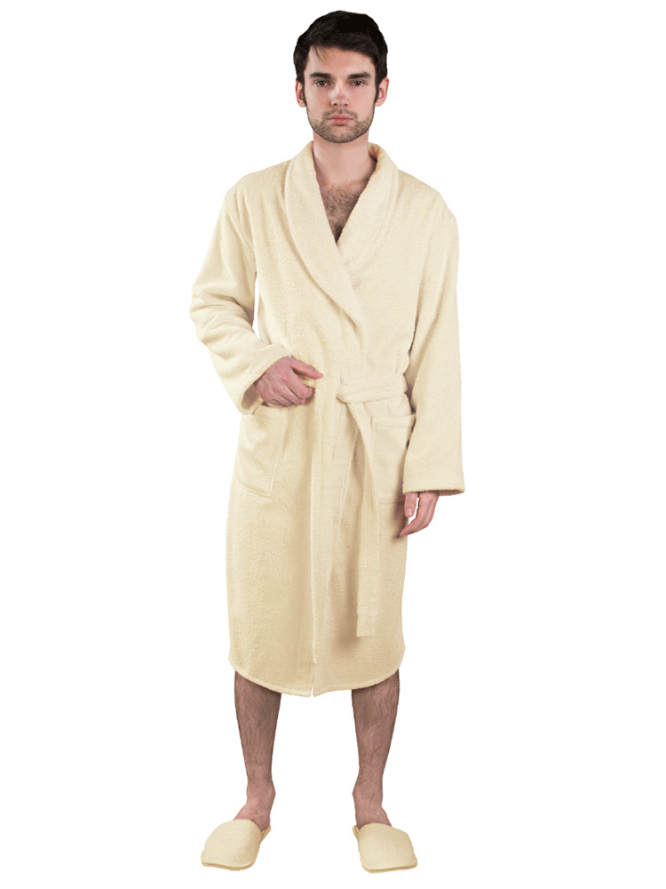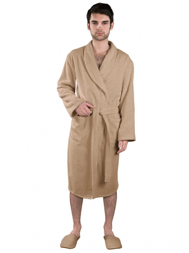 Халат махровый цветной / Шампань: запашной с накладными карманами и поясом, длина рукава 59 см (+/-1), длина по спине 120 см (+/-1)