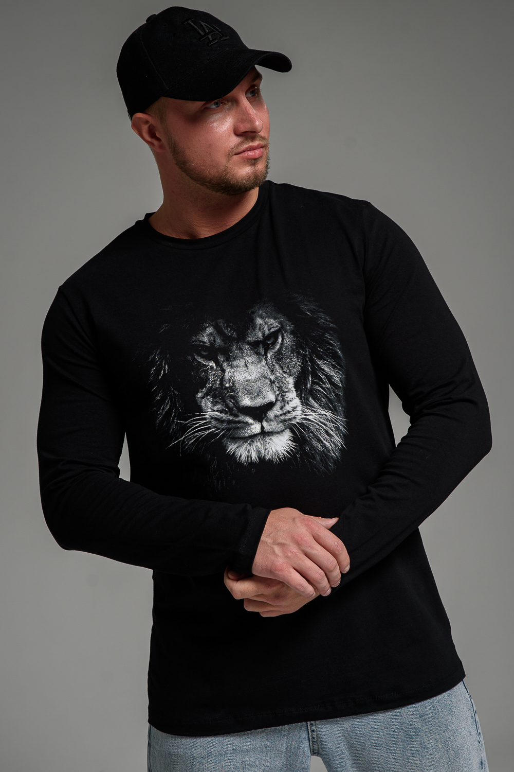 Мужской лонгслив 8514/1 / черный+лев