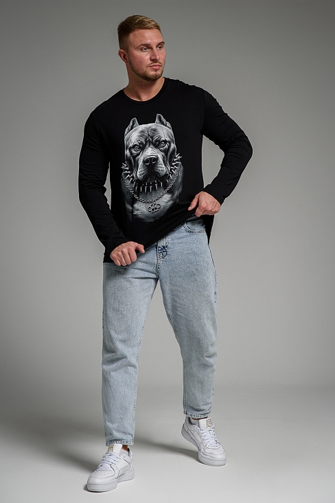 Мужской лонгслив 8514/1 / черный+питбуль