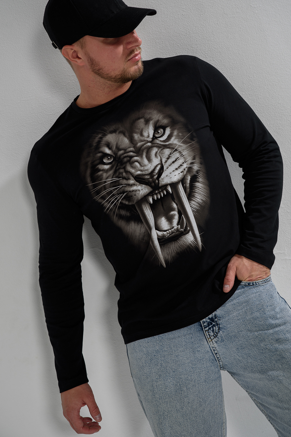 Мужской лонгслив 8514/1 / черный+тигр