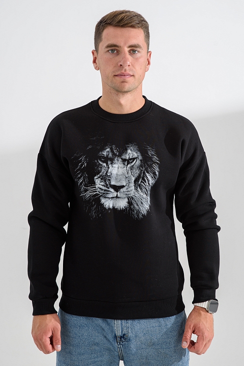 Мужской свитшот 8559 / черный+лев