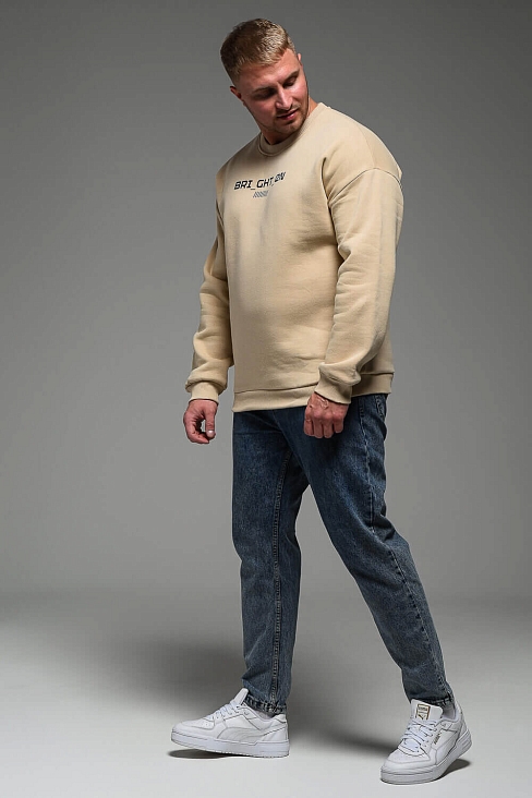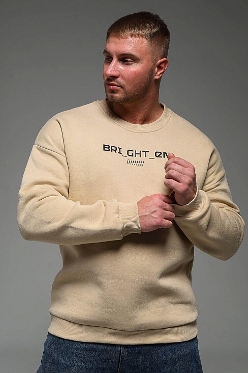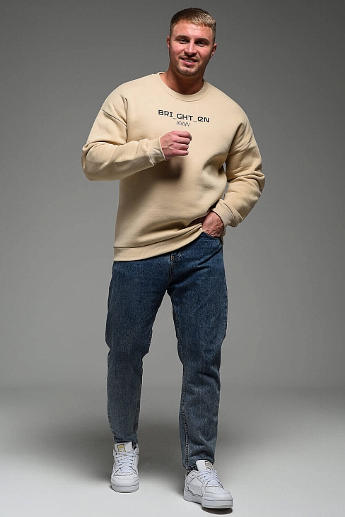Мужской свитшот оверсайз 8522 / бежевый+ярче