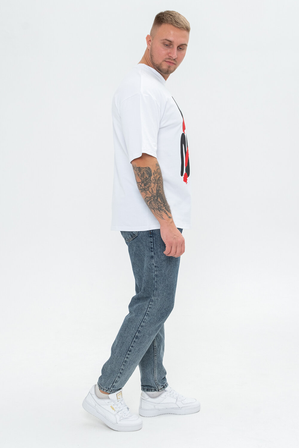 Футболка прямая, средней длины, с округлой горловиной. Рукав короткий. Горловина обработана обтачкой.