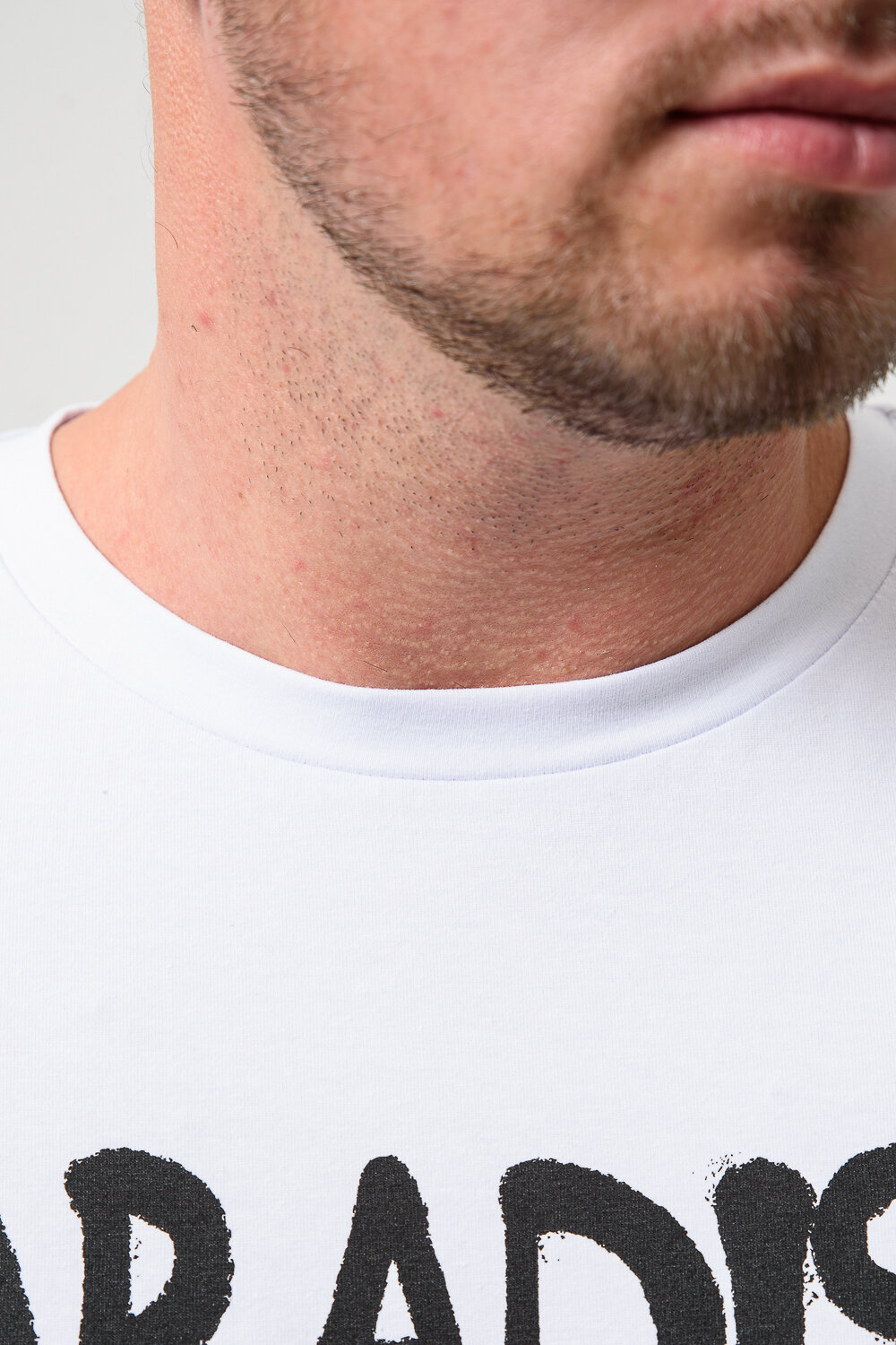 Футболка прямая, средней длины, с округлой горловиной. Рукав короткий. Горловина обработана обтачкой.