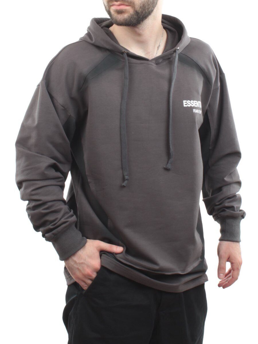 2649 GRAY/BLACK Толстовка мужская (75% хлопок, 20% полиэстер, 5% спандекс)