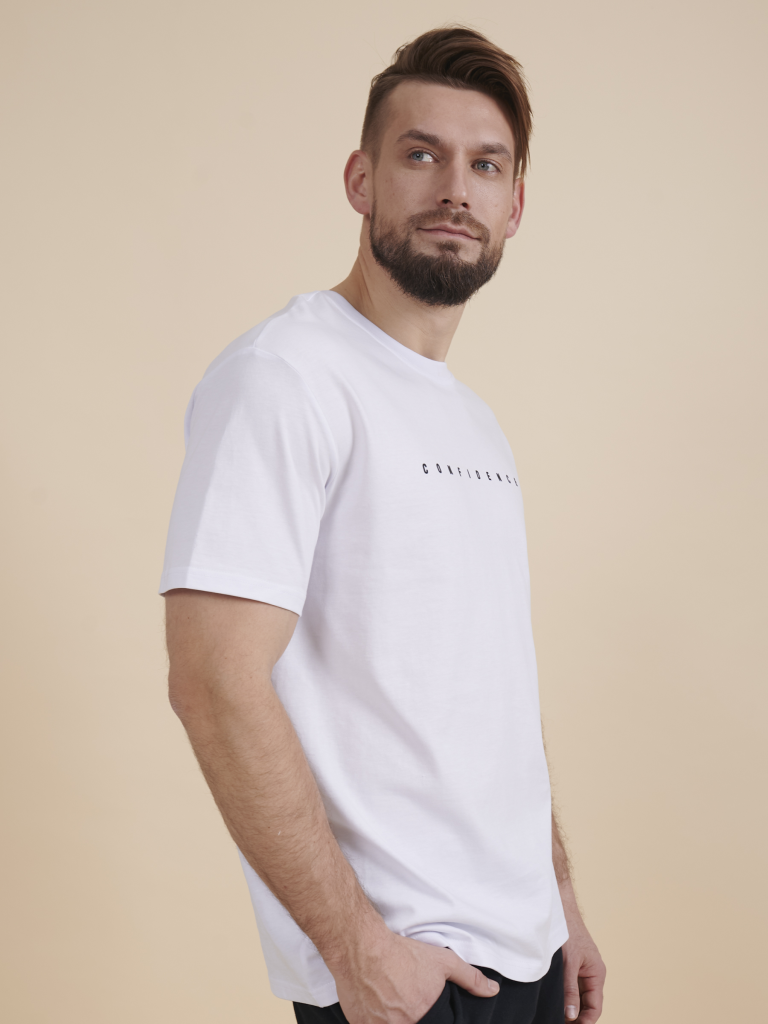 Мужская футболка оверсайз с принтом. Футболка свободного кроя подарит вам комфорт и свободу движения. Джемпер такого силуэта скрывает недостатки фигуры и подчёркивает достоинства. Майка с комфортными свободными рукавами идеальна для повседневной носки. Модель неприхотлива в уходе. Трикотажная футболка по переду украшена стильным лаконичным принтом с объёмными буквами, надпись переводится: "Уверенность". Принт качественный и стойкий — без проблем переносит многочисленные стирки. В составе ткани 100% хлопка — футболка мягкая, приятная на ощупь и позволяет коже дышать. Модель представлена в трёх цветах: серая футболка, белая, тёмно-синяя. Размерная линейка: M (46-176): M (46-188): L (48-176): L (48-188): XL (50-176): XL (50-188): XXL (52-176): XXL (52-188): 3XL (54-188). Майка идеальна для мужчин, молодых парней, подростков. Базовая футболка оверсайз универсальна, отлично подходит для работы, учёбы, спорта, прогулок, отдыха, а также для дома и сна. Легко сочетается с различными брюками и шортами. Её можно носить летом, зимой и в демисезон (осенью и весной). Футболка с принтом оверсайз — это прекрасный подарок брату, мужу или папе на любой праздник. Выбирайте нужный размер по таблице размеров на фото. Цвет товара на экране вашего устройства может отличаться от цвета изделия вживую. Состав: 100%хлопок Возрастная группа: Standard Сезон: Весна Год: 2024 Пол: Мужчины