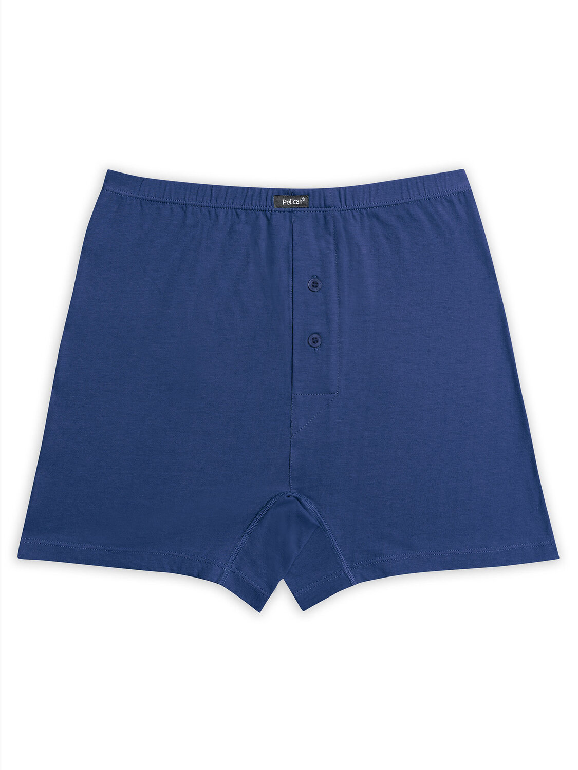 Классические мужские трусы-боксеры. Гульфик на пуговицах на передней части изделия.