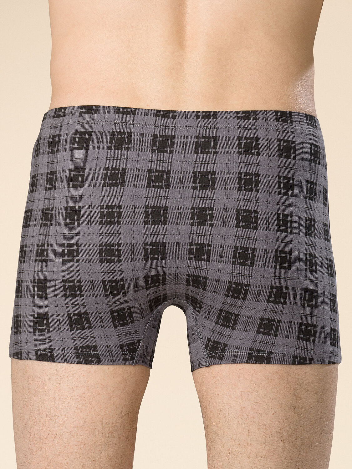 Мужские трусы в клетку. Боксеры выполнены из ткани с высоким содержанием хлопка — они мягкие, дышащие и комфортные. Благодаря эластану изделие долго сохраняет форму даже при частых стирках. Мягкая широкая резинка в поясе не давит и не перекручивается. Шорты плотно и мягко облегают, оставляя движения свободными. Отлично подходят как под деловую одежду, так и под одежду для спорта и отдыха. Модель представлена в практичных сером и тёмно-сером цветах — универсальный вариант под любую одежду. А также в эффектном трендовом оттенке жжёного сахара — оригинально и стильно.