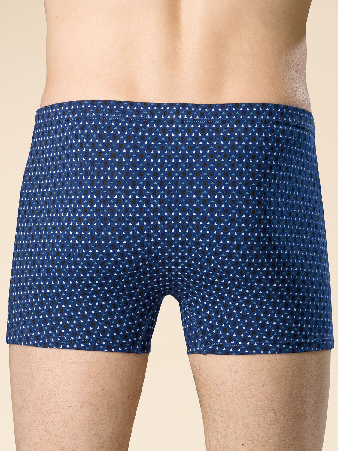 Мужские трусы с геометрическим орнаментом. В составе ткани преобладает хлопок — боксеры отлично пропускают воздух, приятны на ощупь и очень комфортны. Эластан помогает изделию сохранять форму даже при частых стирках. Широкая мягкая резинка исключает трение и раздражение. Модель плотно и мягко облегает, позволяя свободно двигаться. Такие шорты идеальны для повседневной носки, отдыха, занятий спортом. Трусы представлены в двух цветах. Универсальном и практичном синем — отлично сочетается с любой одеждой. А также — в трендовом оттенке шалфея — элегантно и стильно.