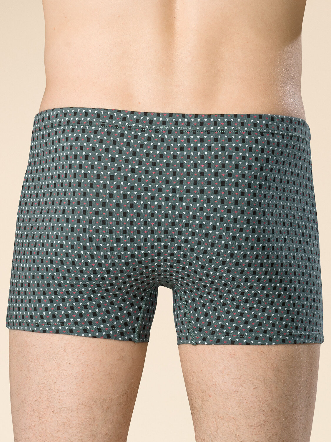 Мужские трусы с геометрическим орнаментом. В составе ткани преобладает хлопок — боксеры отлично пропускают воздух, приятны на ощупь и очень комфортны. Эластан помогает изделию сохранять форму даже при частых стирках. Широкая мягкая резинка исключает трение и раздражение. Модель плотно и мягко облегает, позволяя свободно двигаться. Такие шорты идеальны для повседневной носки, отдыха, занятий спортом. Трусы представлены в двух цветах. Универсальном и практичном синем — отлично сочетается с любой одеждой. А также — в трендовом оттенке шалфея — элегантно и стильно.