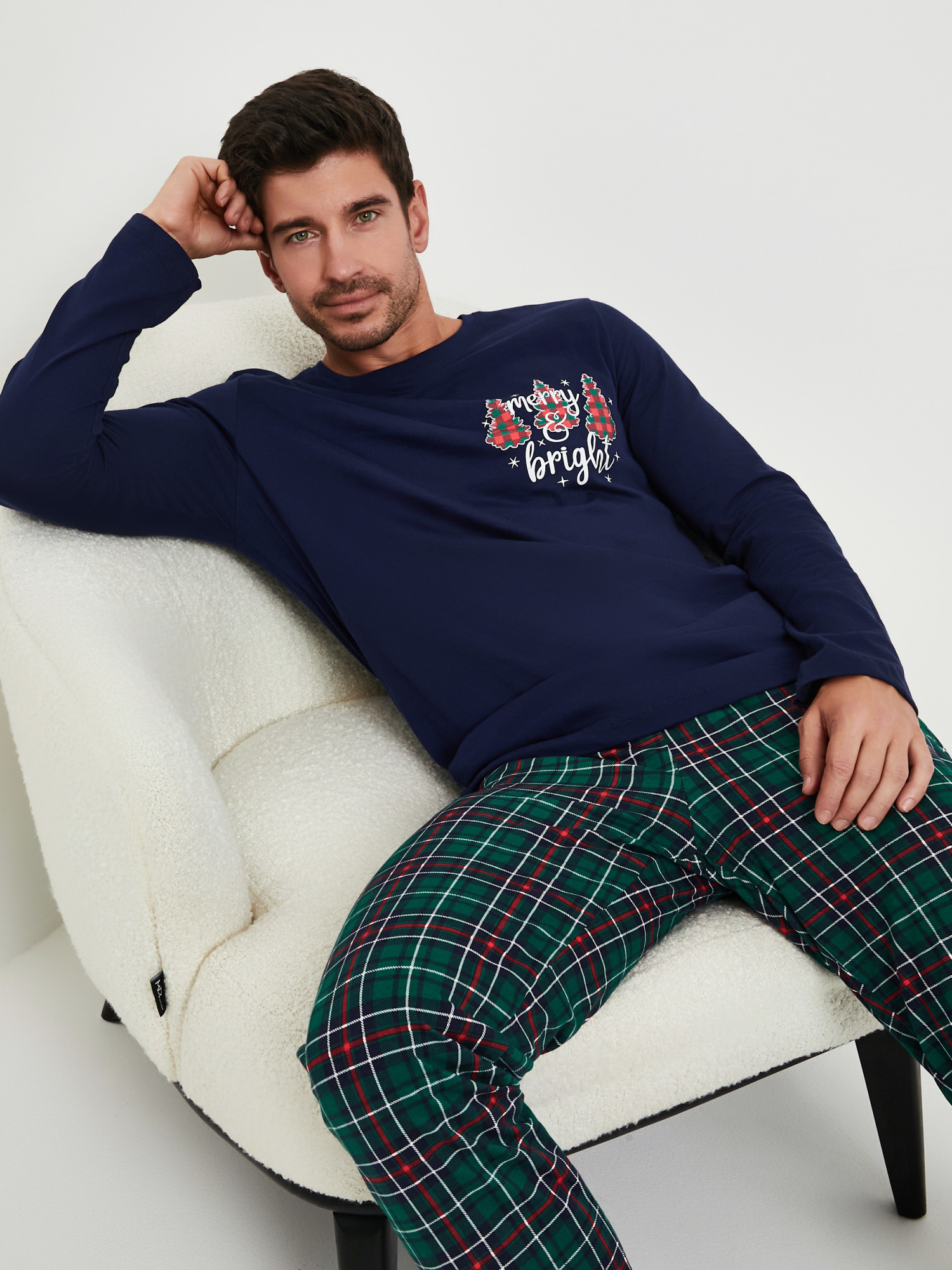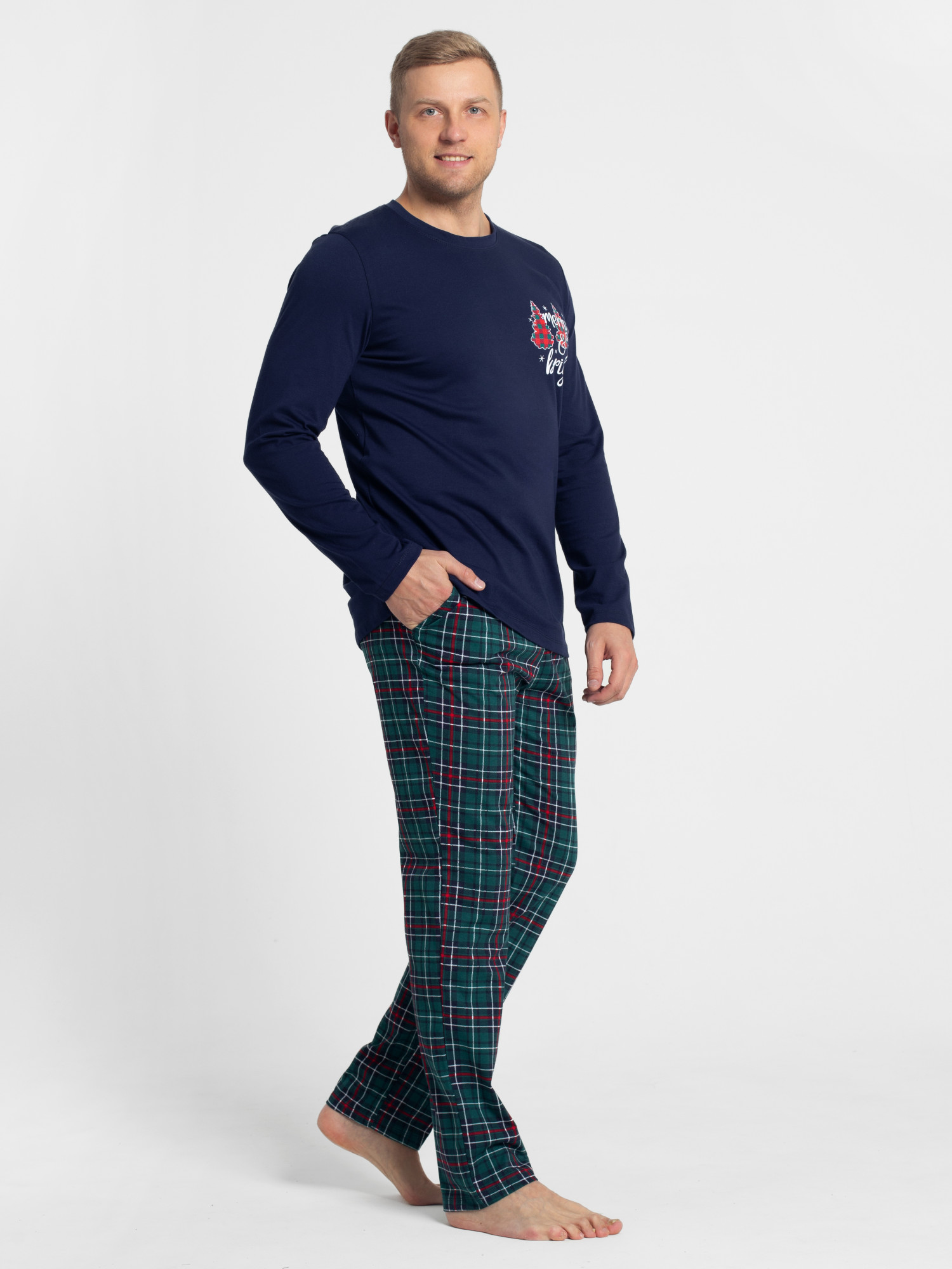 Пижама мужская кулирка с брюками "ЕЛКИ" ЗЕЛЕНЫЙ