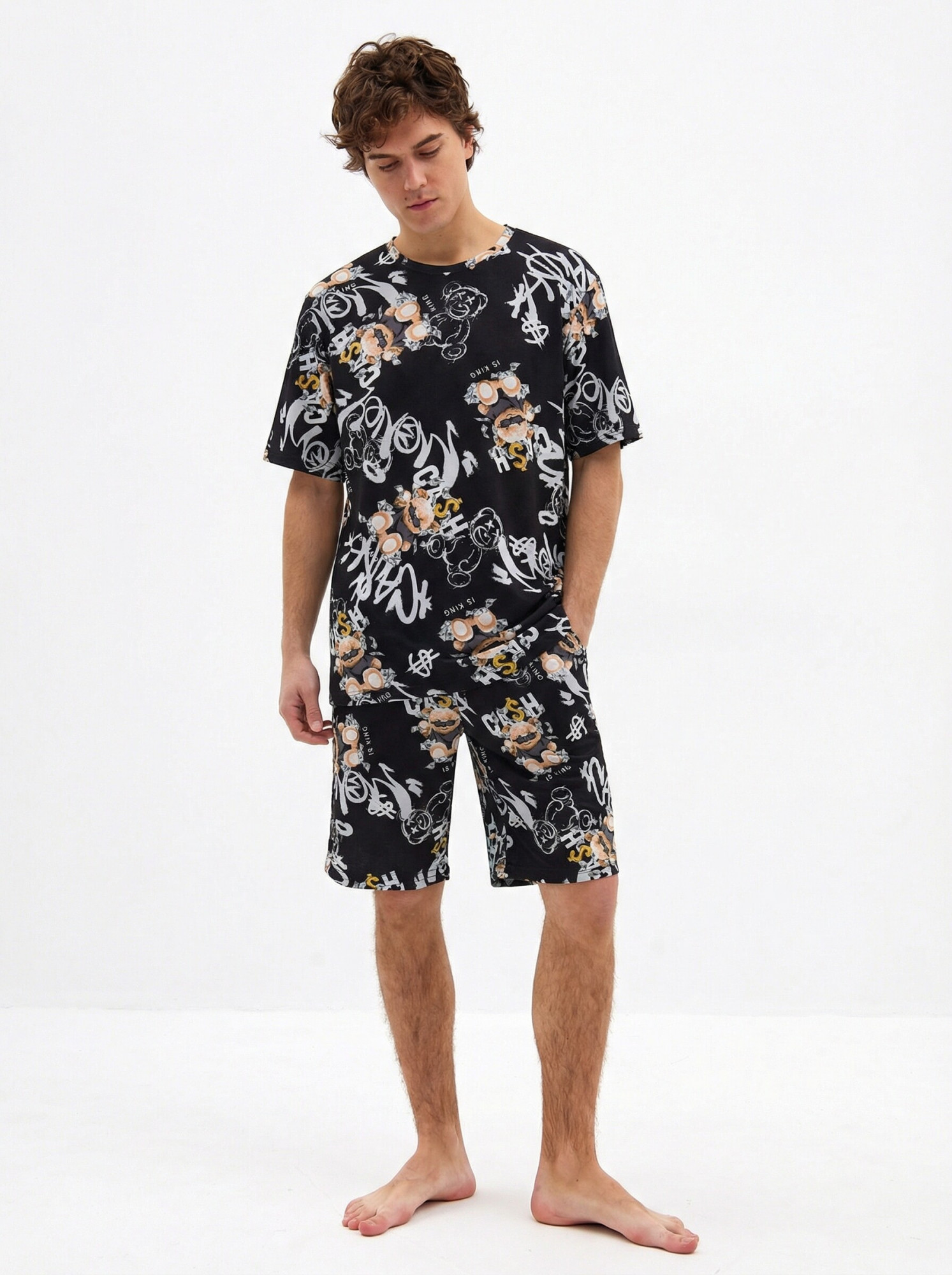 Пижама мужская кулирка с шортами "ЧЕЛСИ" МИШКИ ЧЕРНЫЙ