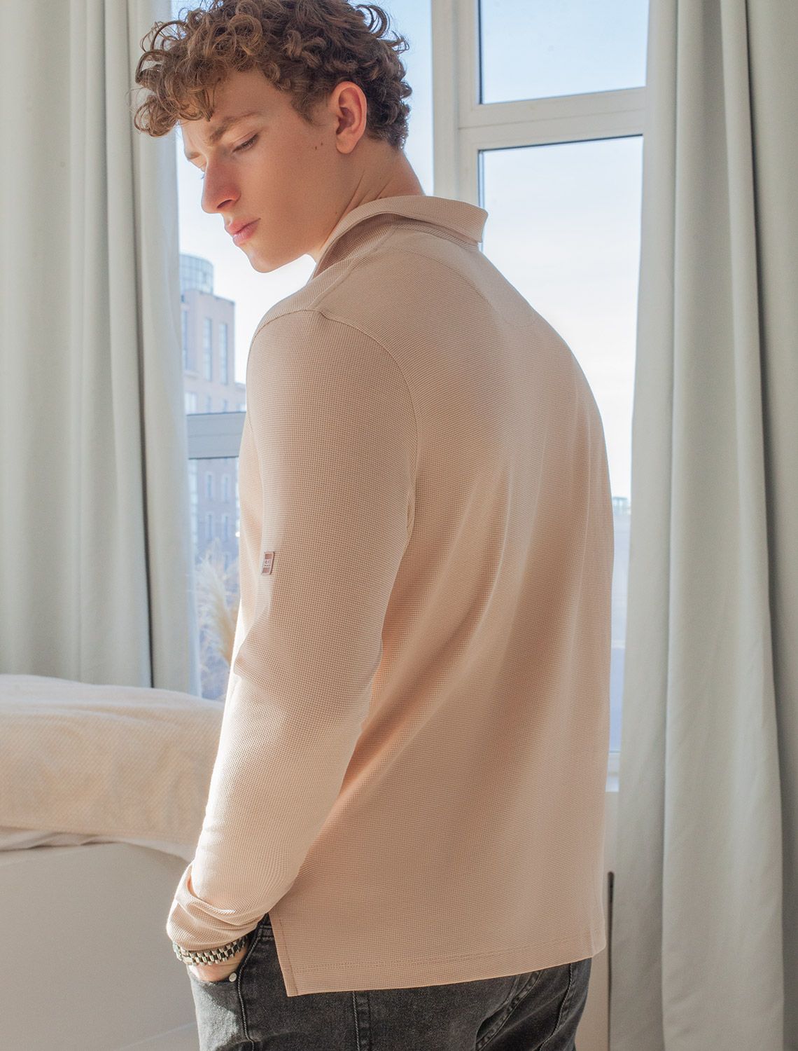 Поло прямого силуэта выполнено из фактурного трикотажа. Эластичный хлопковый материал хорошо пропускает воздух, а одежда из него не пилингуется и комфортно облегает фигуру. Однотонная модель с длинными рукавами и контрастной пуговичной планкой украшена небольшим вышитым логотипом бренда.
