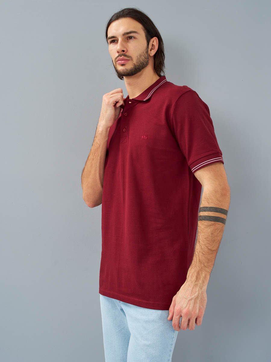 Классическая мужская футболка поло F5, Regular fit (полуприлегающий силуэт), с вышивкой-фирменным логотипом. Выполнена из трикотажного полотна пике (pique). С отложным воротником и короткими рукавами. Застежка-планка обработана пике  контрастного цвета, застегивается на 3 пуговицы.