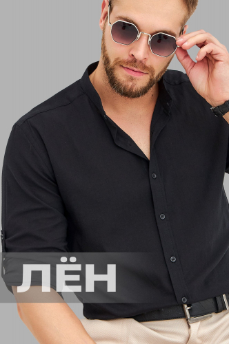 Мужская льняная рубашка с воротником-стойкой Happyfox