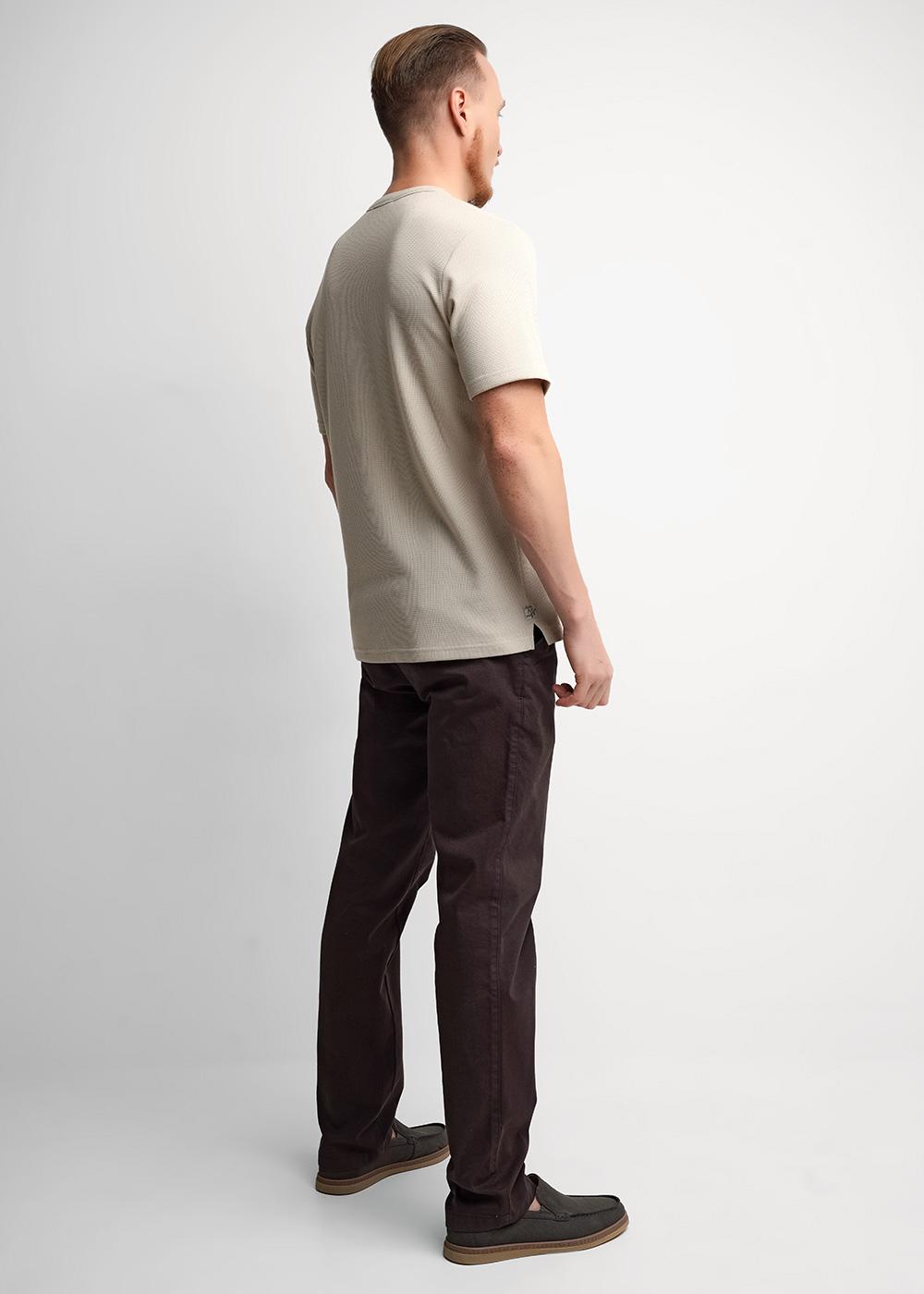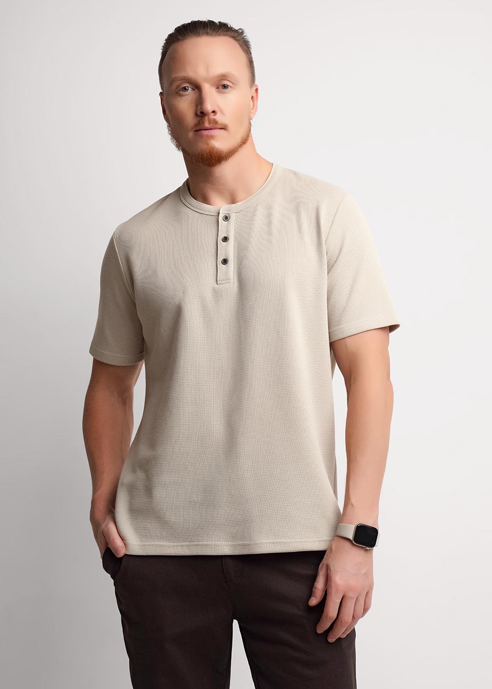 "Описание: Футболка-поло с воротником-стойка и функциональной планкой на пуговицах, из трикотажного полотна вафля. Изделие дополнено имиджевой фурнитурой и отделочными строчками. Простая и удобная модель, идеально подходящая для повседневного гардероба.