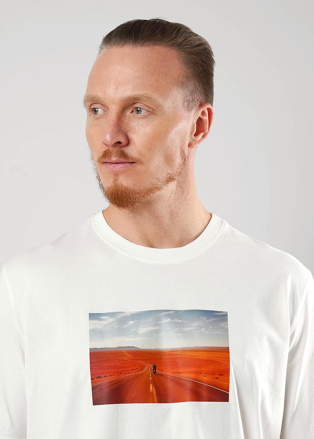 "Описание: Стильная мужская футболка из трикотажа с 100% хлопковым составом. Модель с круглым вырезом горловины и коротким рукавом, дополнена фотографичным принтом, что придает ей оригинальности. Изделие подойдет для активных прогулок и встреч.