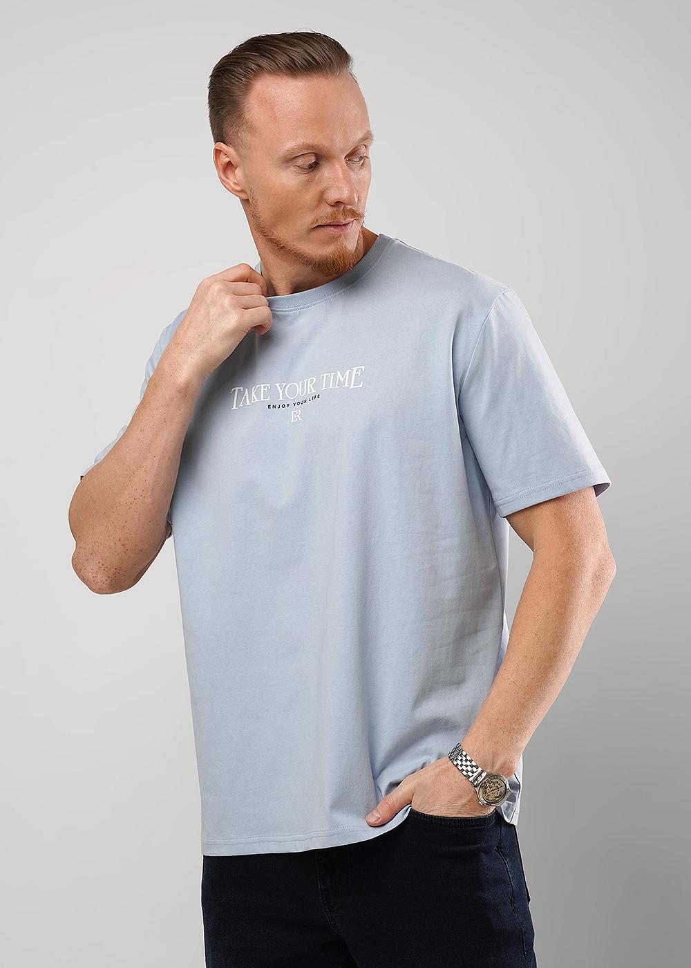"Описание: Мужская футболка из дышащего трикотажного хлопкового полотна. Модель дополнена авторским шрифтовым принтом. Отличный вариант для динамичных мужчин.