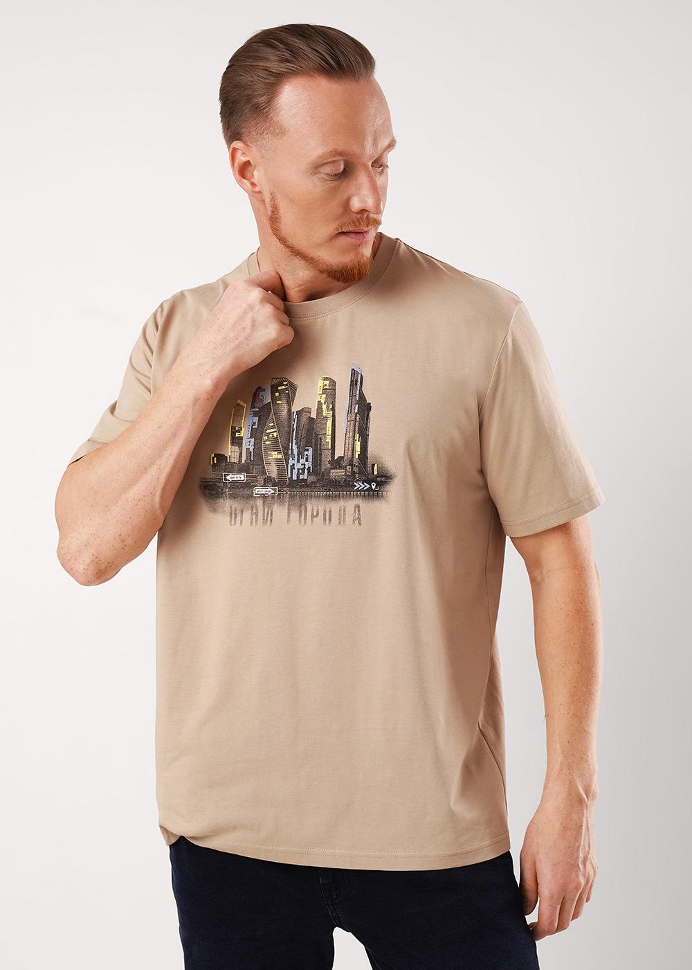 "Описание: Футболка мужская, увеличенного обьема, из хлопкового полотна, круглым вырезом горловины и коротким втачным рукавом. Стильный принт придает модели оригинальность. Отличный вариант для прогулки или встречи с друзьями.