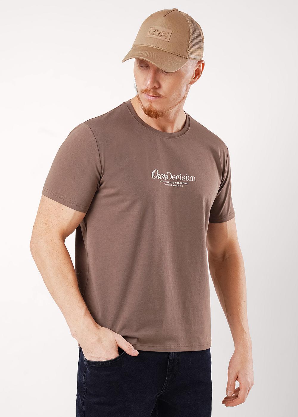 "Описание: Футболка мужская, из хлопкового полотна, круглым вырезом горловины и коротким втачным рукавом. Модель дополнена имиджевой фурнитурой и оригинальным дизайнерским принтом, который разнообразит любой образ и подойдет на каждый день.