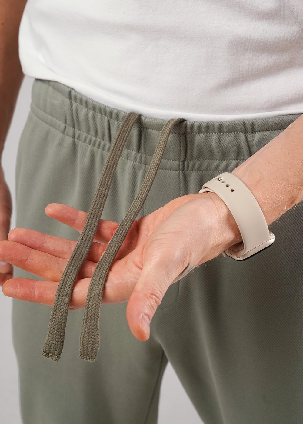 "Описание: Прямые мужские зауженные брюки из фактурного полотна, с большим содержанием хлопка. На эластичном поясе с регулируемой шнуровкой. Функциональность модели придают боковые карманы. Брюки эргономичные и удобные.