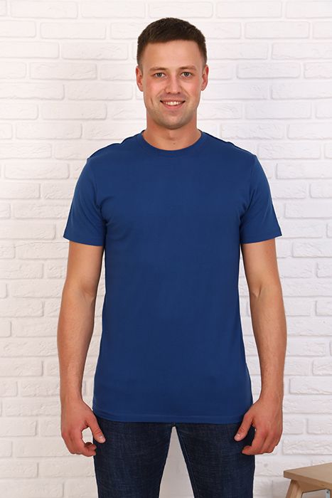 Ткань: кулирка; Состав: 100% хлопок; Сезонность: зима, весна, лето, осень, всесезон; Рукав: короткий рукав; Стиль: домашний, классический, молодежный, повседневный, рабочий, спортивный, школа; Застежка: без застежки; Карман: без карманов; Производство: Узбекистан, "Баракат-текс"; Тип изделия: футболки; Цвет: синий