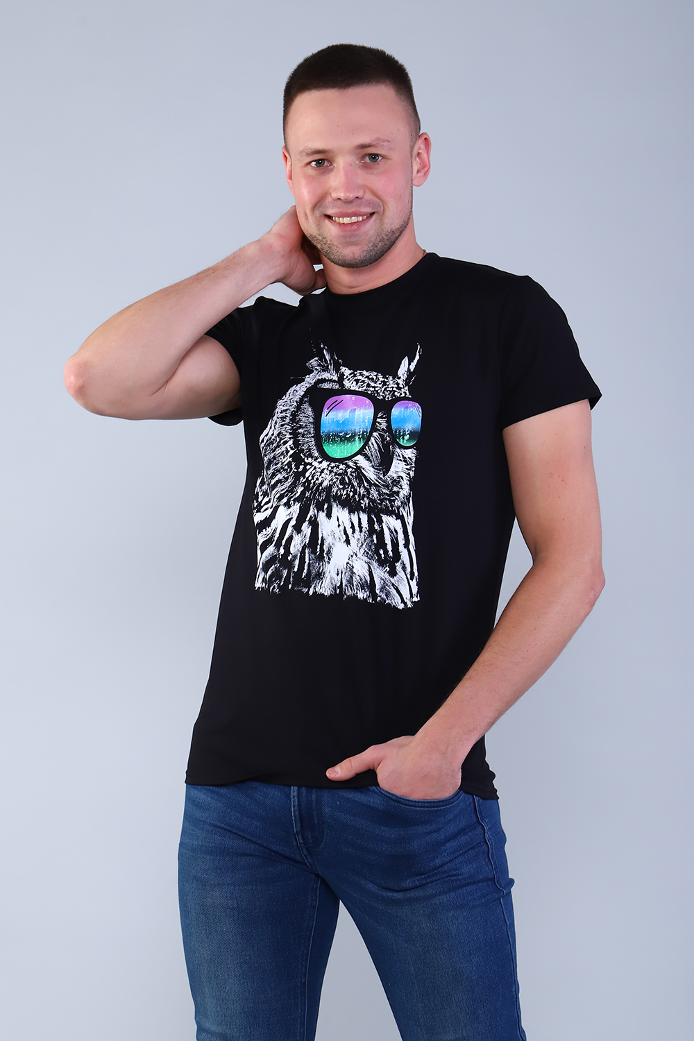Футболка мужская с ярким, молодёжным принтом из кулирки с лайкрой качества пенье. Футболка в стиле унисекс, прямого кроя, круглая горловина обработана планкой из основного полотна, короткий втачной рукав. Футболка - это базовая, необходимая вещь как в мужском, так и в женском гардеробе. Рост модели на фото 183 см, размер 52