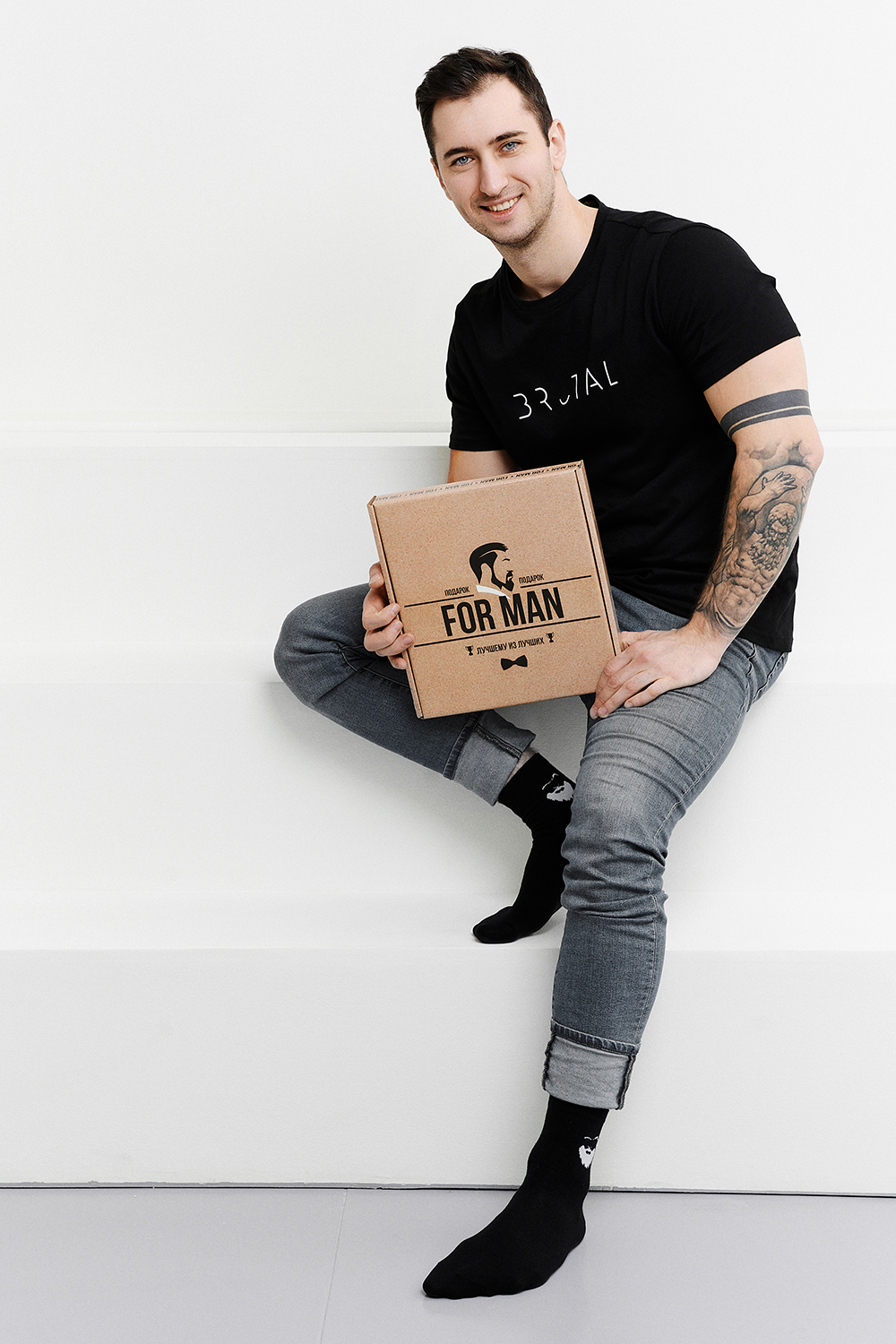 Подарочный набор БРУТАЛ. Черная мужская футболка с принтом и носки с принтом подчеркнут вкус и чувство юмора. Подарочный набор упакован в крафтовую коробку с тематическим принтом. Футболка из 100% хлопка подойдет для повседневной носки и для выхода из дома. Мужская футболка подойдет для занятий спортом и для активных прогулок. Футболка будет отлично сидеть практически на любой фигуре. Носки подойдут к любой одежде и обуви. Изготовлены из высококачественного хлопка, который отлично впитывает влагу, пропускает воздух и подходит даже для самой чувствительной кожи. Хорошо сохраняют форму и цвет, устойчивы к истиранию. Подарочный набор БРУТАЛ будет отличным подарком второй половинке, близкому другу, отцу и дедушке. Рост модели на фото 183 см, размер 52. Размер носков 40-47.